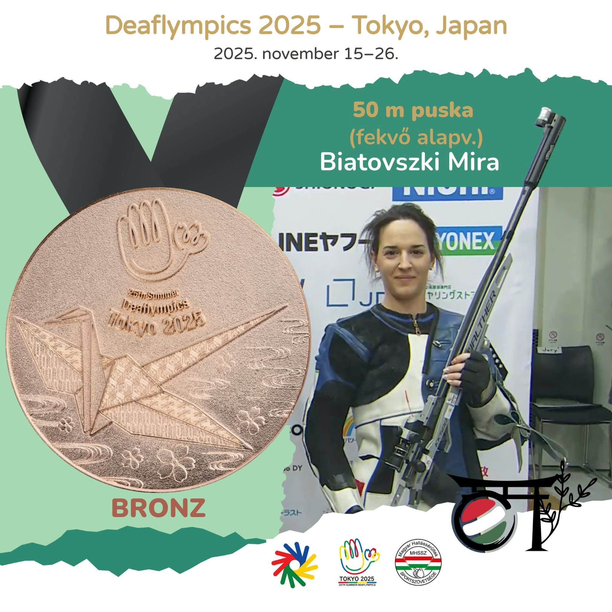 Megállíthatatlan és példaértékű: Biatovszki Mira a tokiói siketlimpia 50 méteres fekvő, 60 lövéses számában 616,1 körrel a 4. helyen jutott a fináléba, ahol újra szintet lépett, és magabiztos versenyzéssel bronzérmet szerzett. A magyar klasszis ezzel már öt egymást követő siketlimpián állt dobogóra – ritka, lenyűgöző állandóság, ami mögött fegyelem, koncentráció és éveken át tartó, kőkemény munka áll. Ilyen teljesítmény előtt csak le a kalappal!