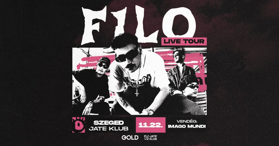 Holnap, november 22-én a JATE Klub színpadán indul Filo első saját turnéja: a Perem több új száma most először szólal meg élő hangszereléssel, miközben a közönség kedvencei – a „Hajnalok a gangon”, az „Élem az álmaim” és a „seholse” – is bekerülnek a listába. A szegedi felütést az Imago Mundi adja, 20:00-kor kapunyitással. Jegyek a TIXA-n, biztonságos újragazdálkodás a TicketSwapon. Minden fontos infót egyben mutatunk, hogy az első sorból éld át az estét.
