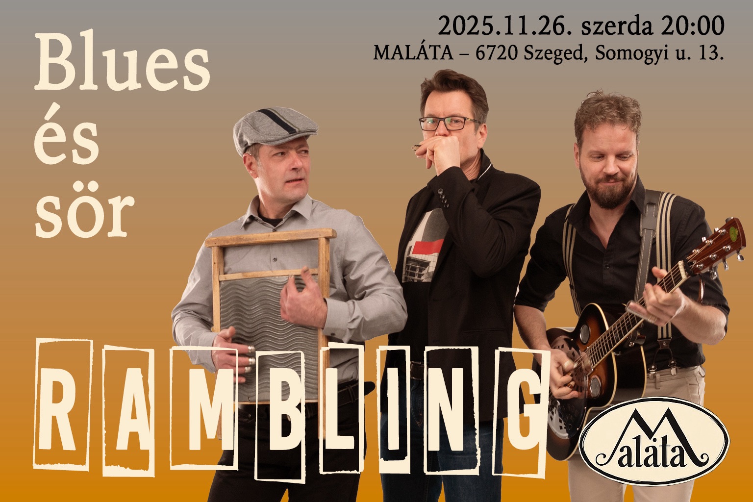 Érkezik a következő felvonás: 2025. november 26-án, szerdán 20:00-kor indul a „Blues és sör – újra a Malátában”, ahol a képlet változatlanul működik – Rambling a színpadon, kézműves sörök a pultban, vacsora a grillről, te pedig kényelmes tempóban hátradőlhetsz, és szépen lejjebb tekerheted a hétköznapok zaját. Ha biztos helyet szeretnél, 18:30-tól foglalj asztalt, a helyszín pedig a belvárosi Maláta, Szeged, Somogyi u. 13. ahol a zenére falatozós, beszélgetős szerda este már adott.