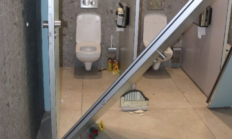 Egy ott tartózkodó fiatalember, aki nem sejtette, mi történik, a segítségére sietett, és megégett a kabátja, megpörkölődött a szemöldöke, a szempillája és a haja. A 43 éves férfit a mentők égési sérülésekkel és sokkos állapotban kórházba szállították. A mellékhelyiségben három ajtó kitört, a WC-csészék megrongálódtak, jelentős anyagi kár keletkezett. A rendőrség közveszély okozás vétségének gyanújával nyomoz.