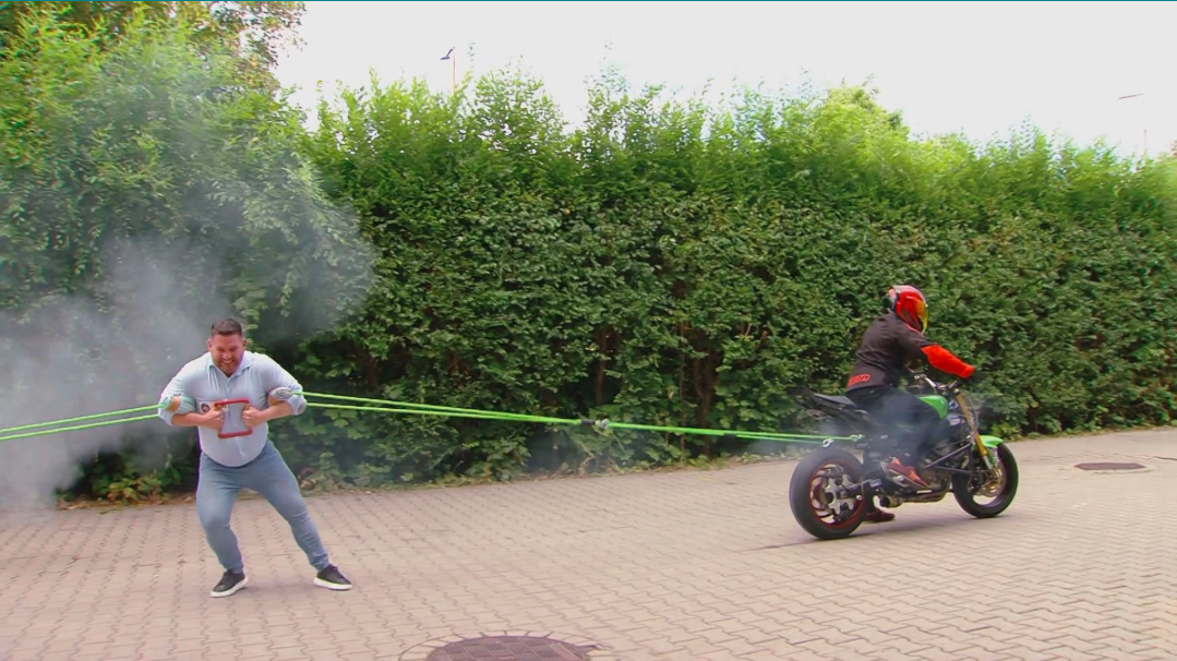 Sinka Zsolt – azaz Popey – ötszörös Guinness-rekorder most arra vállalkozott, hogy a karjaival fékez meg két száguldásra készülő motort. Istenes Bence és Puskás-Dallos Peti nem hittek a szemüknek, amikor végignézték a lehetetlen mutatványt.