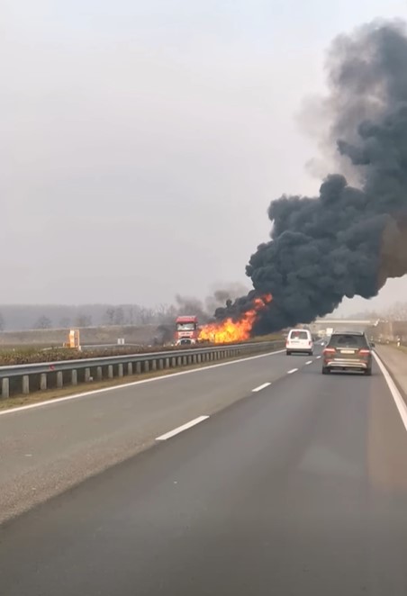 Hatalmas lángokkal ég egy kamion az M5-ösön, megállították a forgalmat