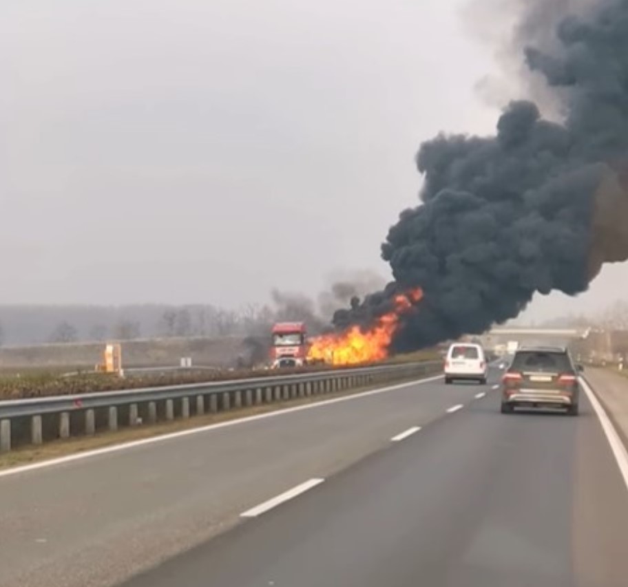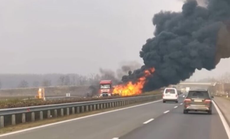 Hatalmas lángokkal ég egy kamion az M5-ösön, megállították a forgalmat