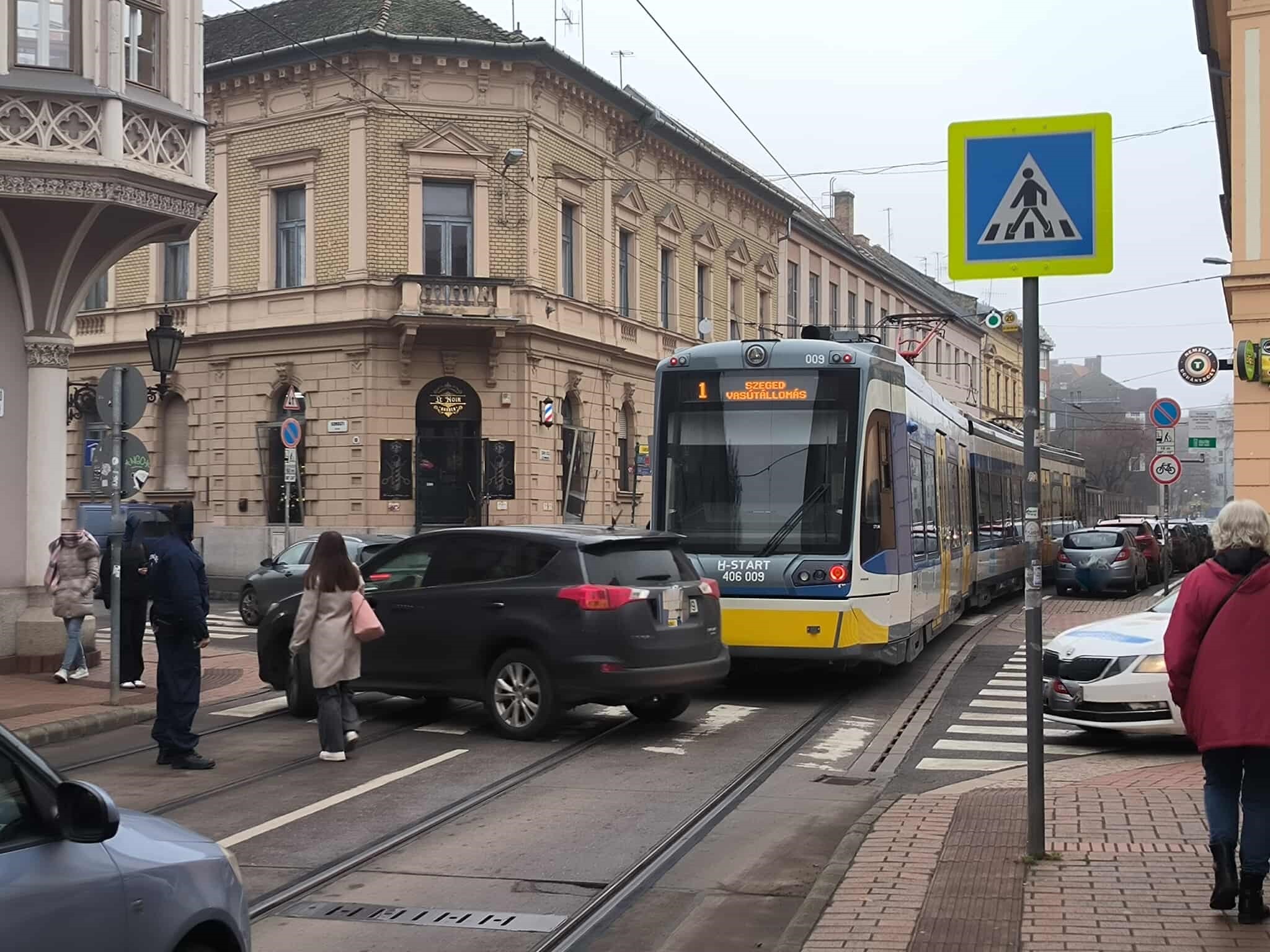 Rosszul parkoló autó miatt akadt meg a tram-train közlekedés, masszív torlódás alakult ki a belvárosban