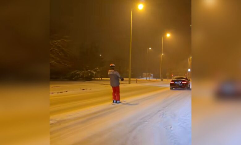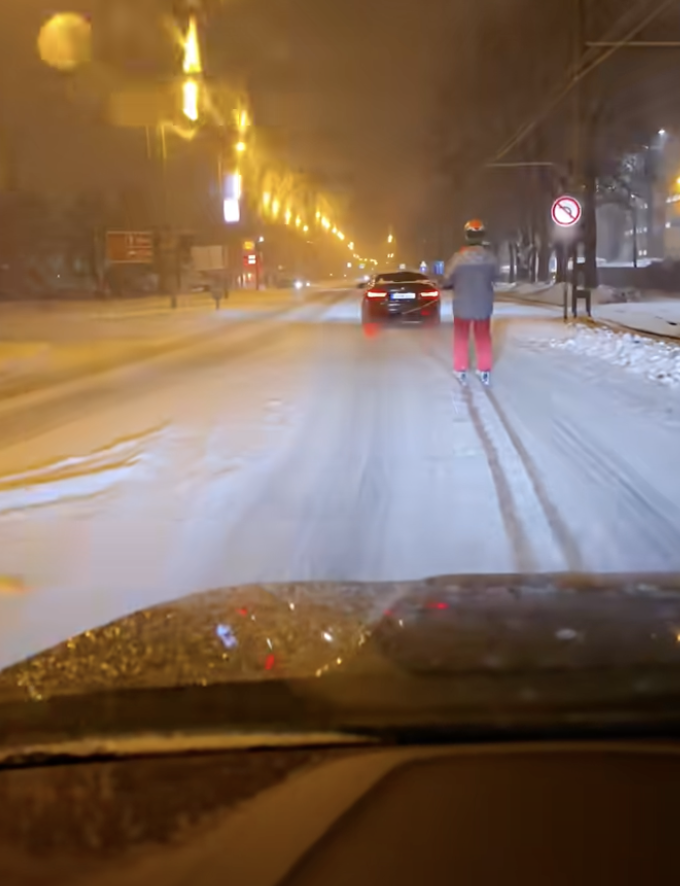 Napi szürreál: az autók közt síelt egy férfi Szegeden, majdnem Darwin-díj lett belőle (videóval)