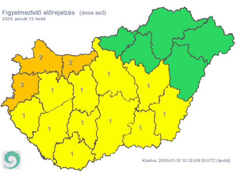 A HungaroMet első-, és másodfokú figyelmeztetést adott ki ónos esőre: