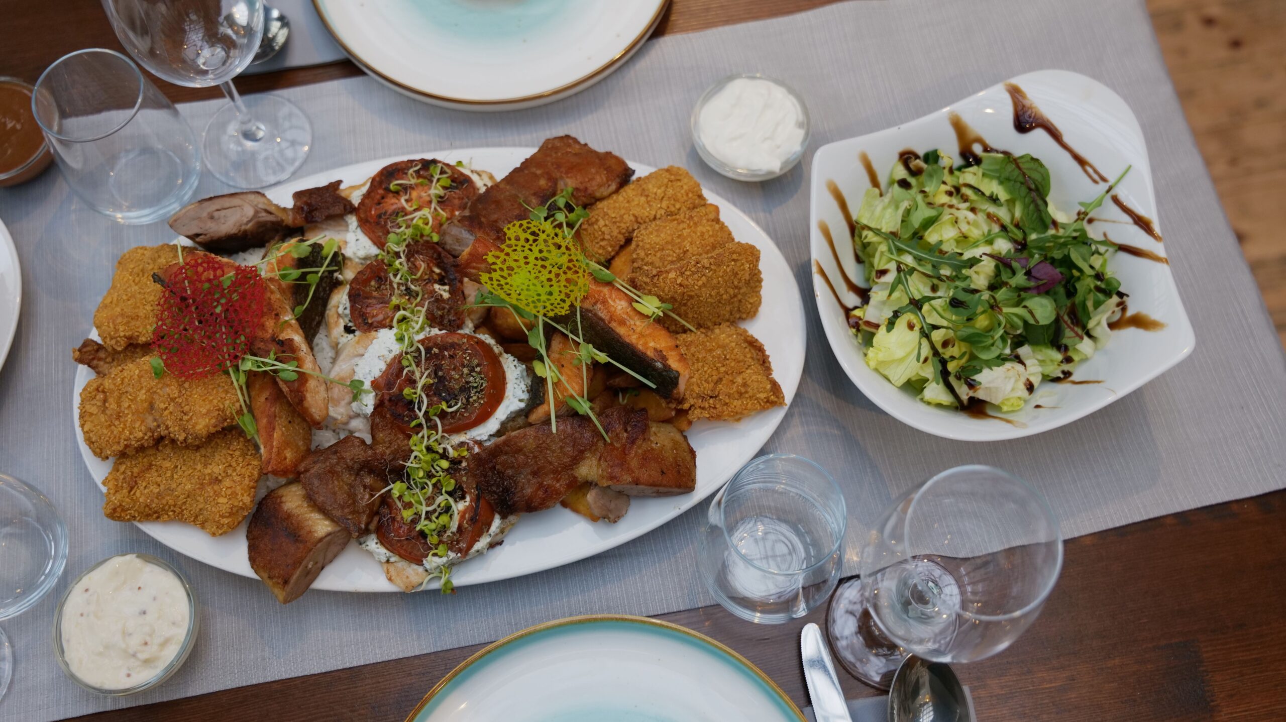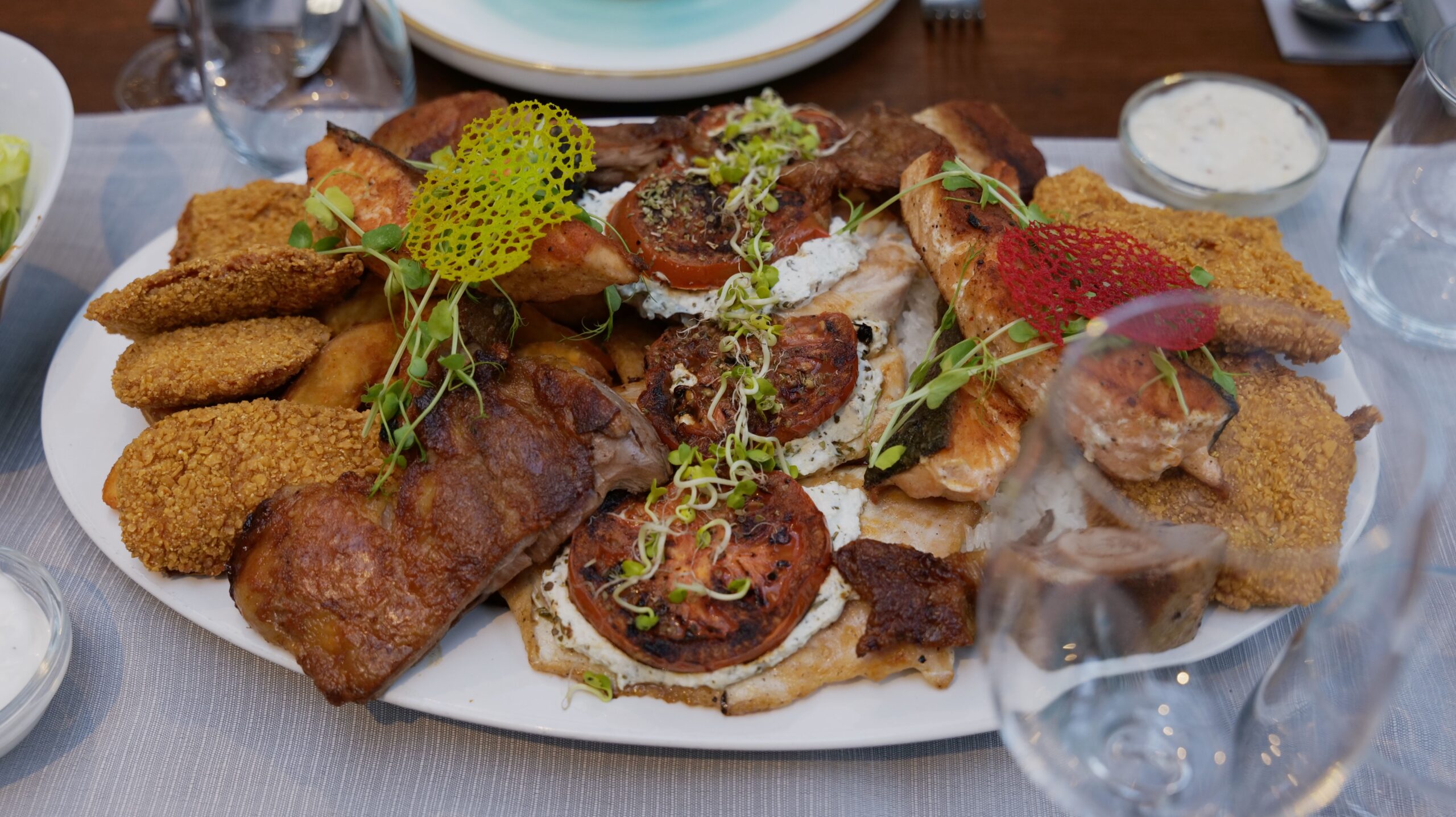 A „Halas és szárnyas bőségtál” a frissebb vonal: lazac steak, tortilla chips bundában sült tőkehalfilé, fetás, pestós, paradicsomos csirkemell steak és kacsasült. Mellé a köretben friss kevert zöld saláta, steak burgonya és jázmin rizs jön, mellé tartár és remulád. A mix lényege, hogy a roppanós panír, a szaftos szárnyas és a karakteres kacsa szépen felváltva érkezik, így a társaságban minden ízlés talál fogást.