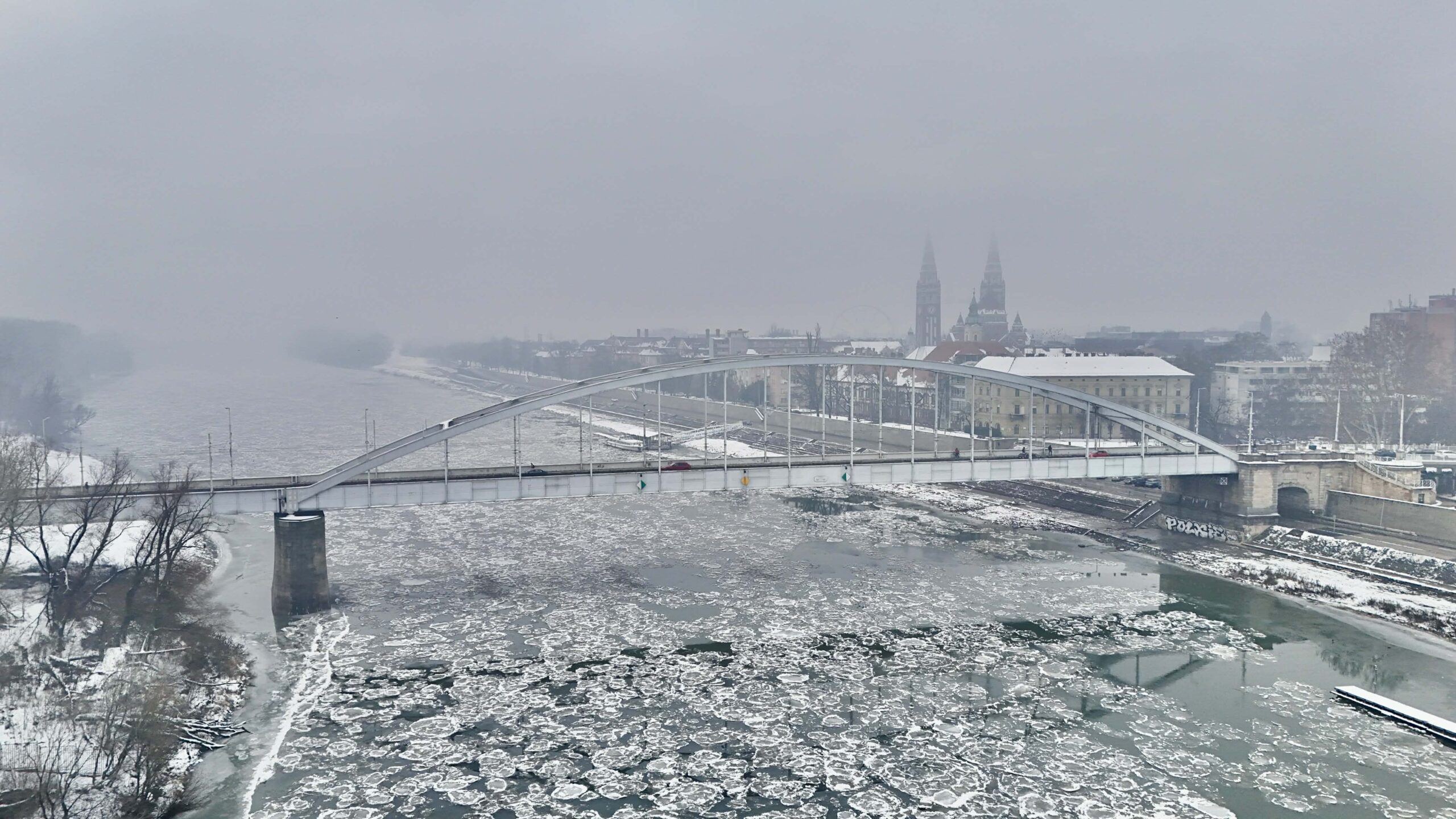 „Félelmetes és gyönyörű látvány egyszerre” – írta Alex a videó mellé. A jégzajlás a folyók természetes téli jelensége, Szegednél azonban mindig különös figyelmet kap, hiszen a város szívében vonul.