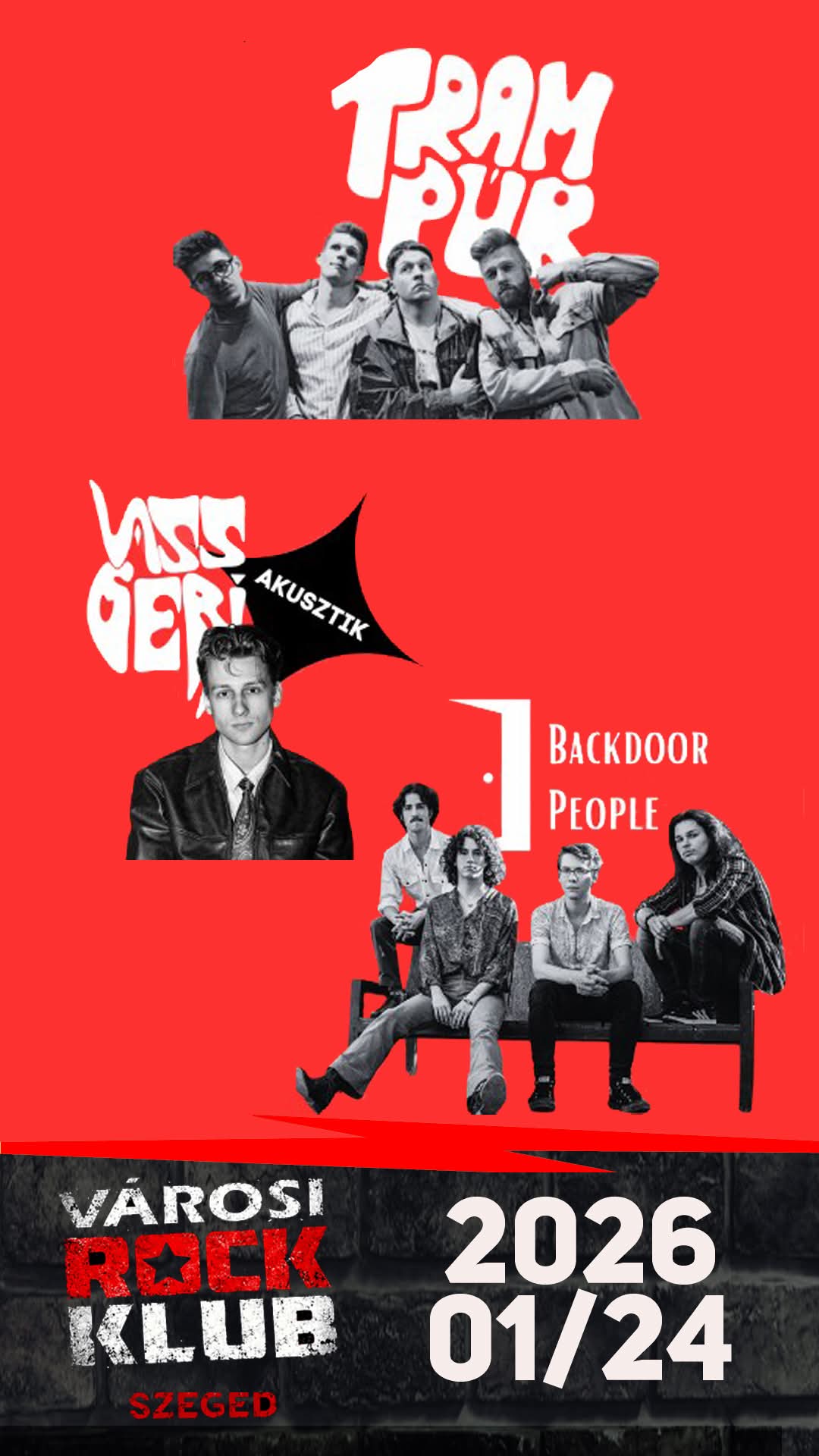 Ha szereted azt, amikor a rock és az élő zene nem sablonos, akkor a helyed szombaton a Városi Rock Klubban lesz! A színpadot három fiatal, karakteres előadó: Backdoor People, Trampúr és Vass Geri hódítja meg, akik mind másképp közelítenek a zenéhez, mégis ugyanazt keresik, a közönséggel való őszinte kapcsolatot.