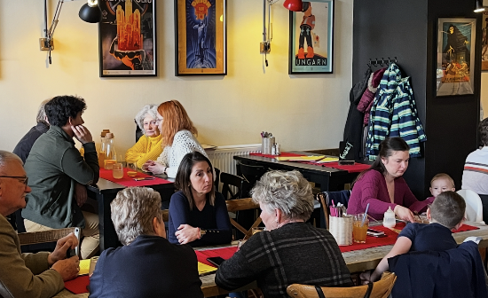 Elképesztően sokan vannak, be is kukucskáltunk pár fotó erejéig, illetve meg is kérdeztük a vendégeket mit szólnak ehhez az új lehetőséghez: többen dicsérték a finomságokat, de van aki azt is hozzátette, hogy végre megfizethető áron van kiadós ebéd.