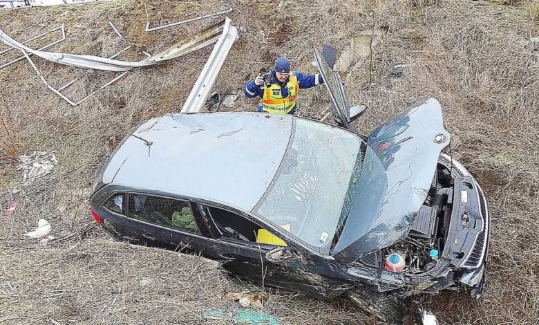 Baleset történt Szeged felé, az autó árokba borult! Vigyázzatok magatokra! (galériával)