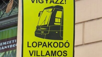 “Vigyázz! Lopakodó villamos” – poénos táblákkal szórták tele Szegedet