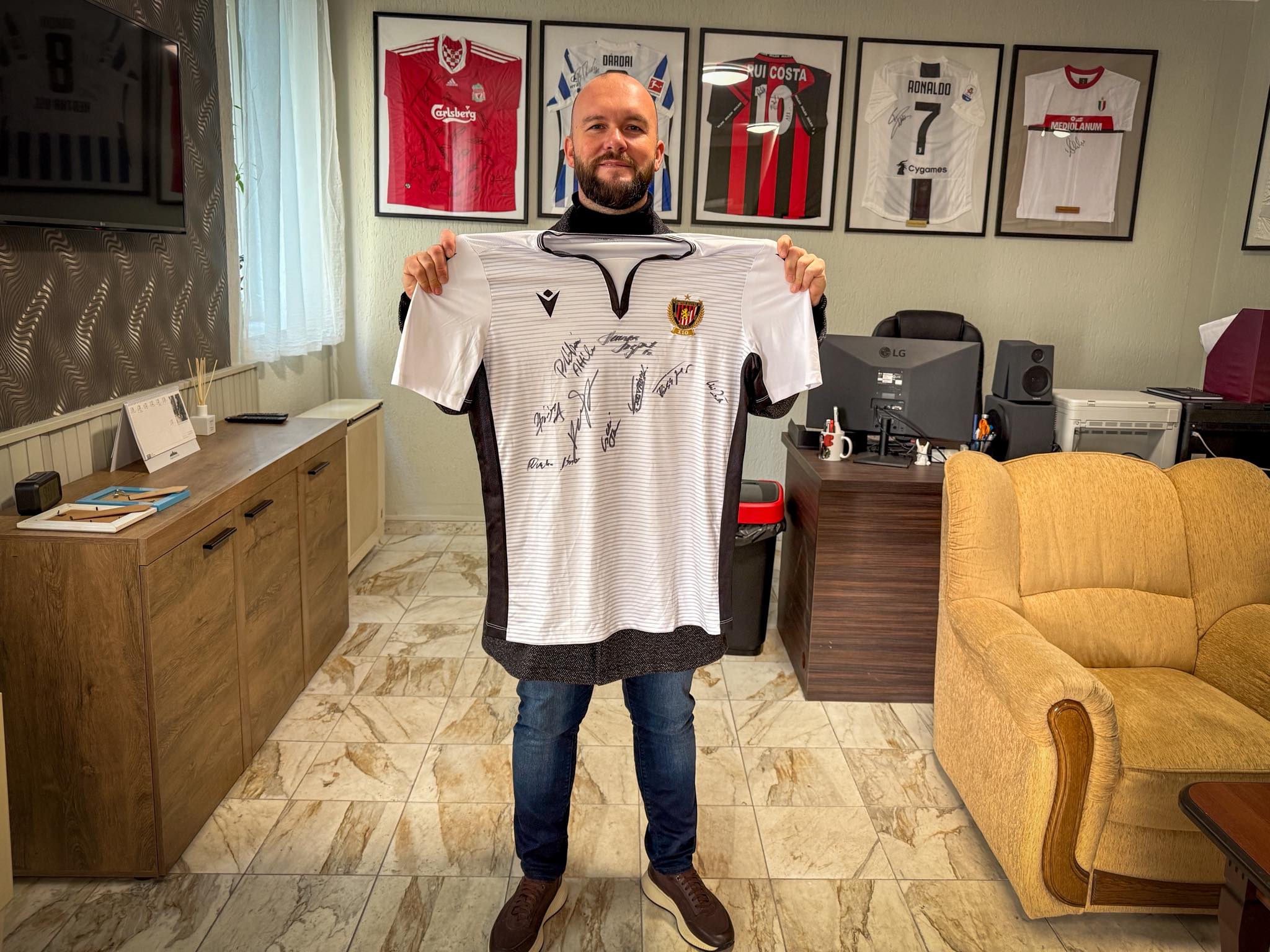 “A Képviselői Kupán vendégként szerepelt a Kispest-Honvéd Öregfiúk csapata, akik kérésemre aláírtak egy mezt, amit most jótékonysági mezárverés keretein belül licitre bocsájtottunk.”