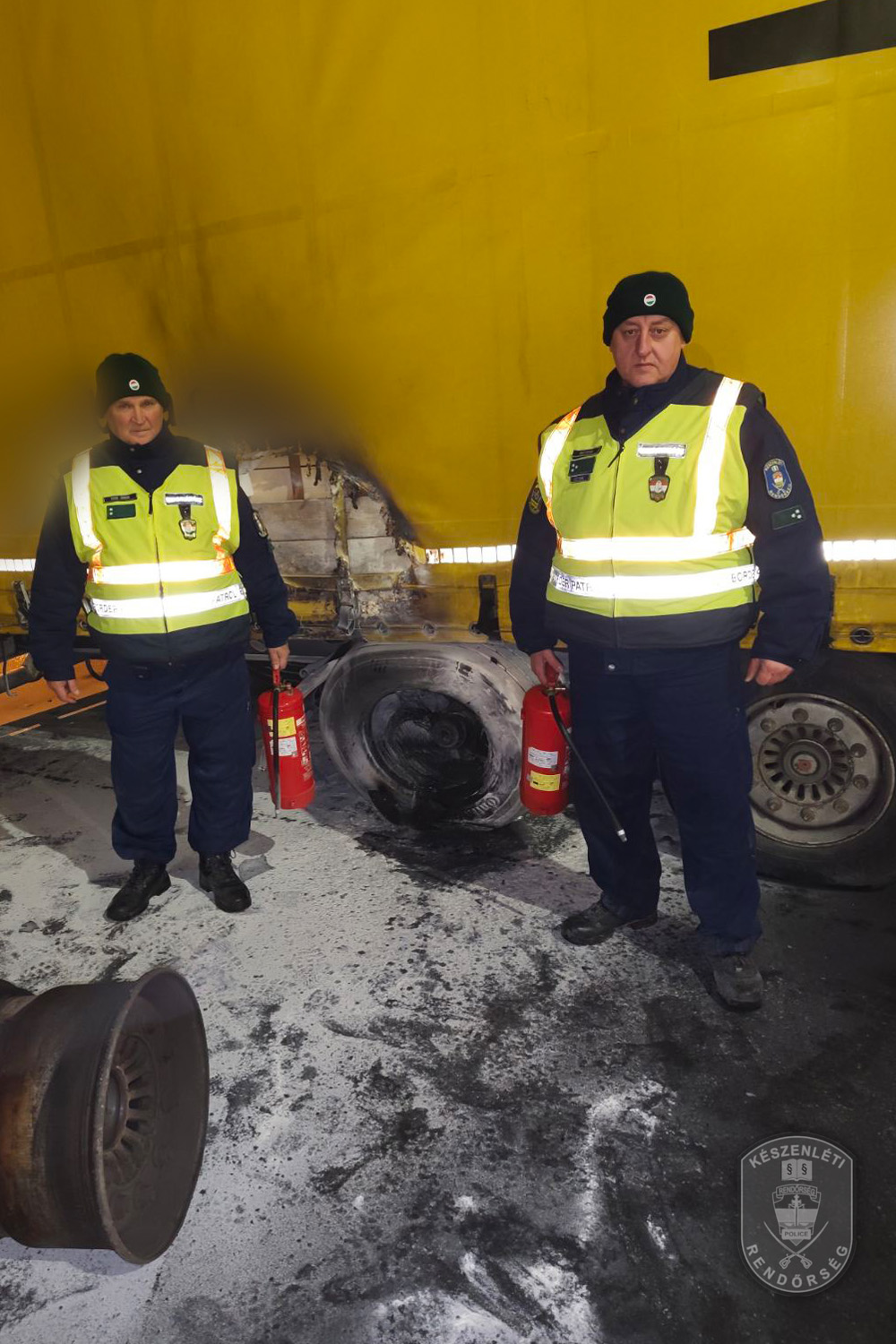 A Készenléti Rendőrség beszámolója szerint a határvadászok azonnal megkezdték az oltást a közeli benzinkút tűzoltó készülékeivel. Rövid időn belül sikerült eloltani a lángokat, majd a felhevült hátsó tengelyt vízzel hűtötték a tűzoltók kiérkezéséig. A tűzoltók a helyszínen megállapították, hogy gyors beavatkozás nélkül a lángok rövid időn belül átterjedhettek volna a jármű teljes rakományára. A pihenőhelyen különösen veszélyes volt a helyzet a benzinkút közelsége miatt. A határvadászok azonnali fellépésének köszönhetően személyi sérülés nem történt. Gratulálunk a határvadászoknak!