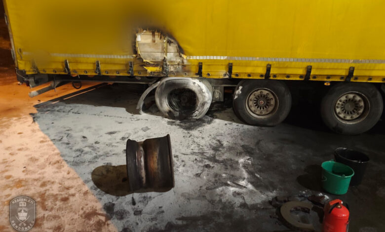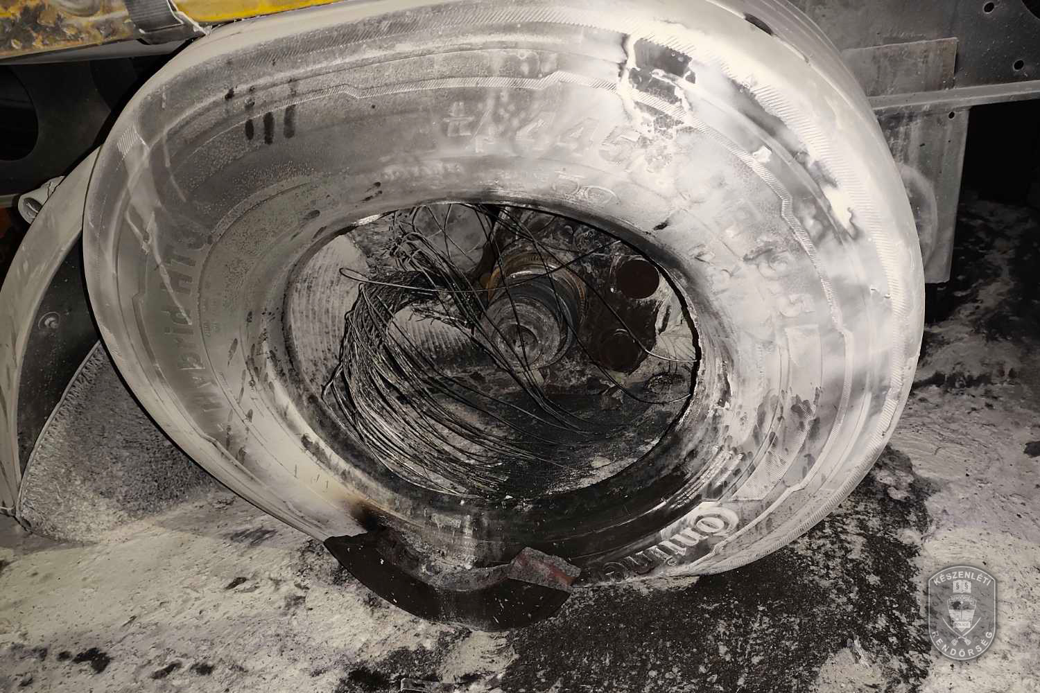 A Készenléti Rendőrség Csongrád-Csanád Vármegyei Határvadász Század járőrei az M43-as sztráda Szent Gellért pihenőhelyének ellenőrzésekor vették észre, hogy felrobbant egy török rendszámú teherautó pótkocsijának egyik jobb oldali kereke, majd a gumiabroncs azonnal lángra kapott.
