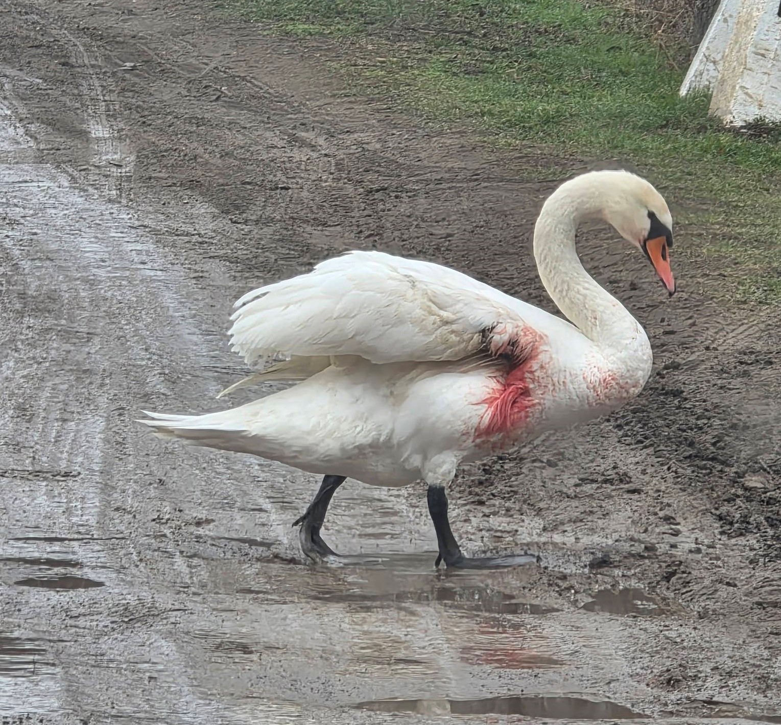 A probléma tehát az lehet, hogy a hattyú szárnya már korábban eltört, a kiálló csont vége pedig most felsértette őt, ezért láthatták véres foltokkal a madarat. Bízunk benne, hogy mielőbb rendbejön.