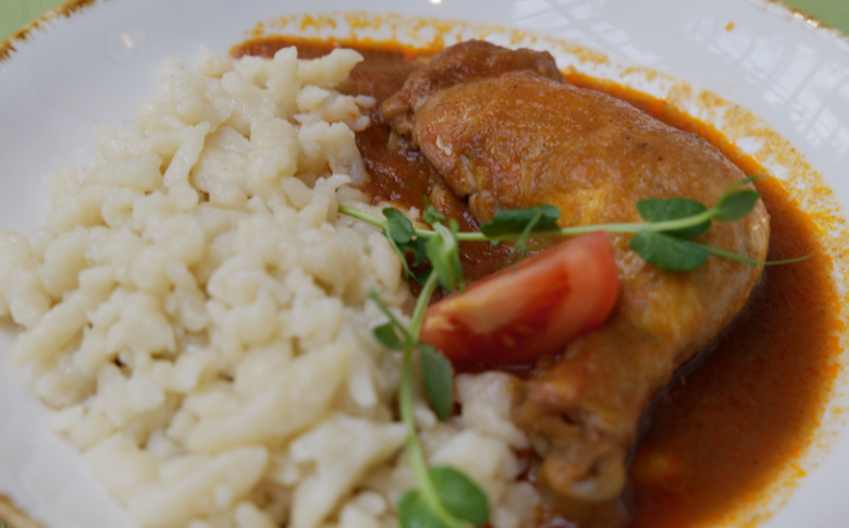 Zoli séf a videóban egyértelműen a klasszikusokra szavaz: „csirkepörkölt klasszikus galuskával” – és ami a legfontosabb, bőséges adagokkal. Azt is megtudjuk, hogy „farkaséhesen is elég”, a tányér pedig pazarul mutat a savanyúság és a 3 dl házi limonádé társaságában.