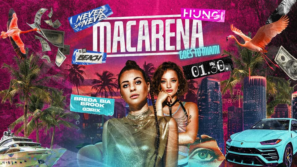 Tüzes táncra fel, most pénteken jön a MACARENA X NEVER SAY NEVER, a lemezlejátszók mögött Bréda Bia, Brook és Gerix pörgeti a zenét. Szombaton pedig a hét legforróbb bulija érkezik a SZEXI SZOMBAT, ahol DJ Loving Arms és Carl Cozmo lesz a hangulatért felelős.