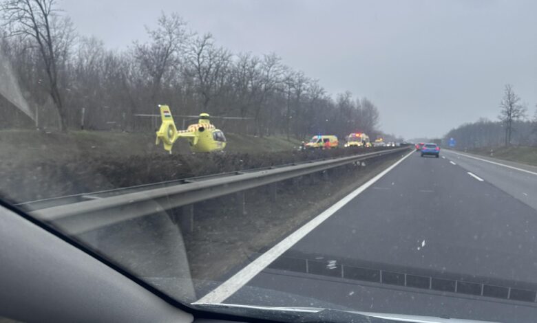 Baleset az M5-ös autópályán, mentőhelikopter is érkezett a helyszínre