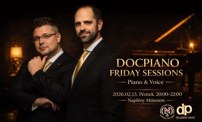 Jövő pénteken viszont abszolút a hangulat és a zene viszi a prímet: indul a Docpiano Friday Sessions, a zenekar vadonatúj, akusztikus sorozata. A koncepció egyszerű és erős: Piano & Voice, világzenei hangulatok, ismerős dallamok friss köntösben. Nem harsány koncert, hanem érzékeny, beszélgetésbarát háttér, ami köré szépen felépül az este. Helyszín: Napfény Műterem nagyterem. Időpont: 2026.02.13., péntek, 20:00–22:00. Asztalfoglalás ajánlott, a belváros ilyenkor gyorsan megtelik: +36 30 952 6500!
