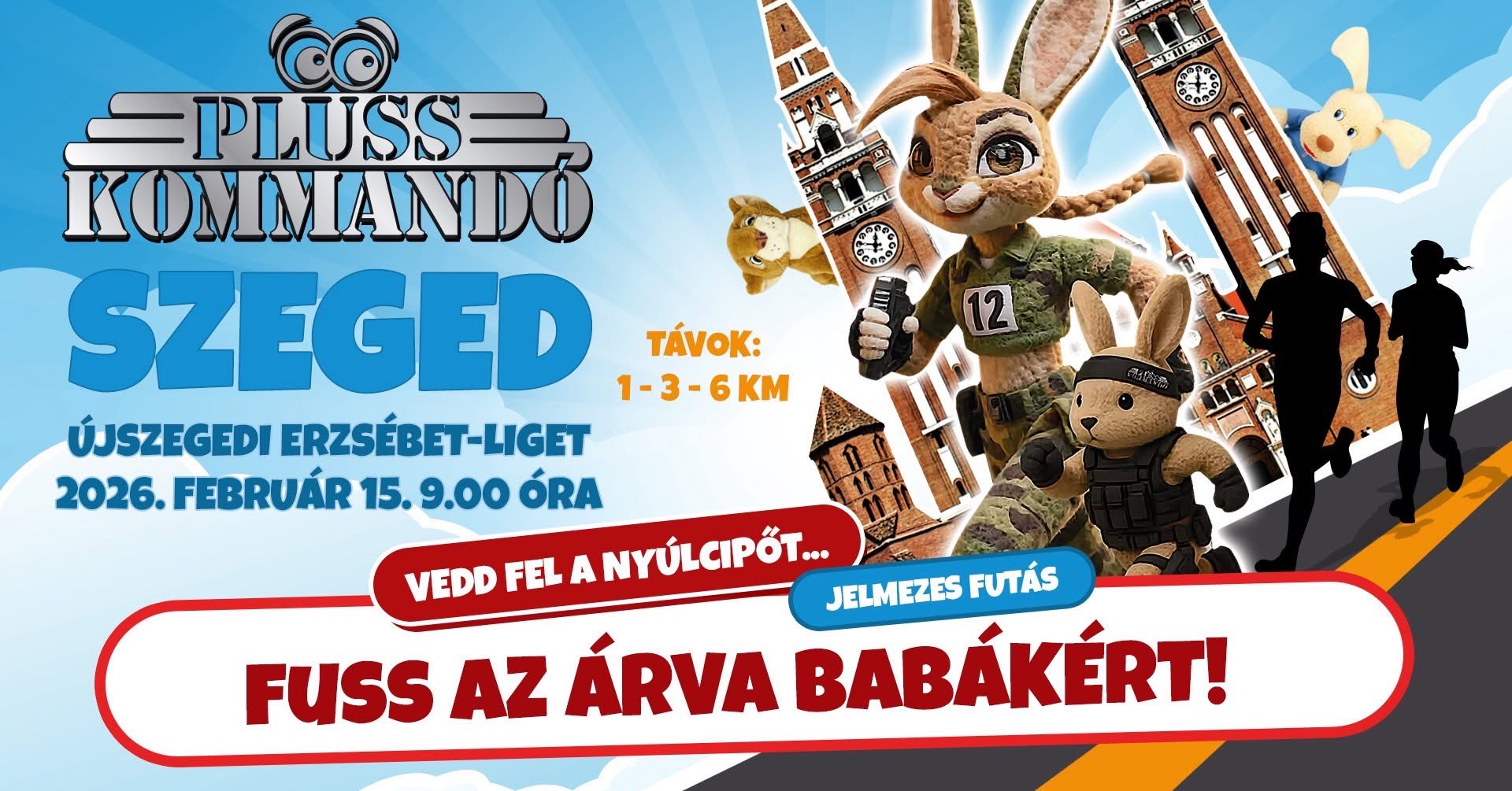 Mint megtudtuk, február 15-én, az Újszegedi Erzsébet-ligetben rendezik meg a Plüss Kommandó Szeged jótékonysági futást, ahol 1, 3 és 6 kilométeres távokon, akár jelmezben is lehet indulni. A rendezvény nemcsak sportesemény, hanem családi, közösségi program is, ahol minden egyes lépés egy jó ügyet szolgál. A rajt reggel 09:00-kor indul, a közös bemelegítés pedig 08:45-kor. A nevezéssel az árva kisbabák támogathatjuk. További részletek és nevezés ITT.