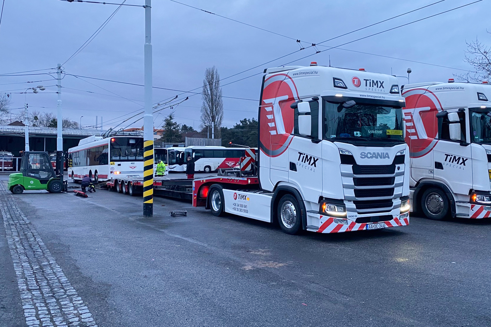 Helyszíni látogatásuk idején két jármű már a gyári fehér alapszínében, minden korábbi grafikai elem nélkül várta a további beavatkozásokat. Az SZKT kérdésükre megerősítette, hogy a trolibuszok forgalomba állítása ezúttal gyorsított ütemben történik majd, szakítva a korábbi gyakorlattal, amikor a hasonló beszerzések esetén teljes újjáépítés előzte meg az üzembe helyezést. A döntés hátterében a társaság jelenlegi járműhiánya, valamint a Salzburgból beszerzett csuklós Solaris Trollino 18-asok folyamatban lévő renovációja áll, ami miatt a pardubicei eredetű trolibuszok az előzetes műszaki felmérések eredményei alapján a lehető leghamarabb, várhatóan már tavasszal szolgálatba állhatnak, egyelőre lényegi átépítés nélkül.