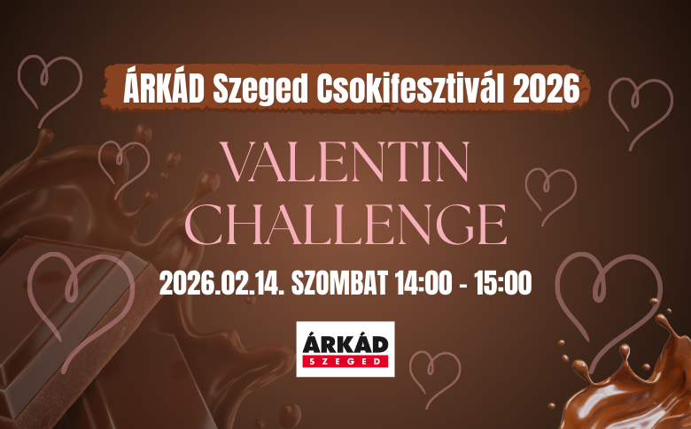 Az ÁRKÁD Szeged Csokifesztivál Valentin-challenge-ére párokat várunk: egy jégszívet kell együtt megolvasztani, csokikat kóstolni, és csapatként bizonyítani. A nevezők közül 5 párt kiválasztunk, ők biztosan nyernek, és esélyt kapnak az akár 100.000 Ft értékű utalványra. ITT TUDTOK JELENTKEZNI!