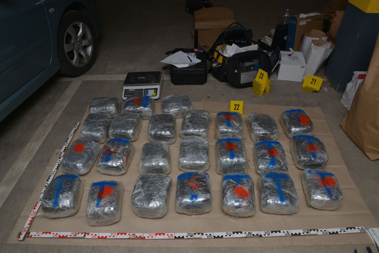 A Készenléti Rendőrség Nemzeti Nyomozó Iroda munkatársai 2022. december 29. napján megtartott akciójukban éppen egy ilyen alkalommal ütöttek rajta a vádlotton. A garázsban a rendőrök megtaláltak és lefoglaltak többezer kábítószer tartalmú tablettát, közel 5 kilogramm marihuánát, több száz gramm tiszta kokaint, közel 2 kilogramm tiszta amfetamint, valamint kábítószer csomagolásához szükséges anyagokat, mérleget.