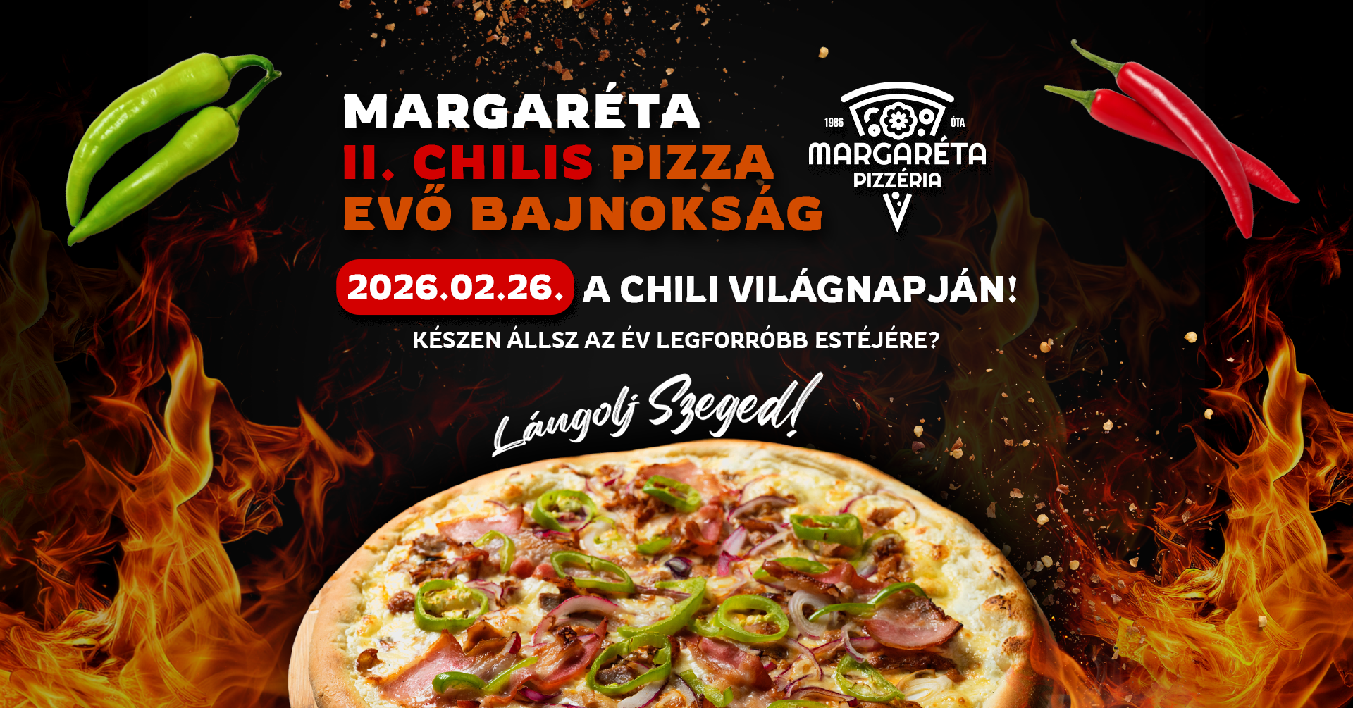 Ha mindig is szeretted feszegetni a határaidat – vagy legalábbis a nyelvedét –, akkor most nagyon figyelj: a nevezési határidő vészesen közeleg, és már csak holnap reggel 8-ig lehet beszállni a város egyik leglángolóbb versenyébe. A tavalyi őrület után a Margaréta Pizzéria – avagy Magyarország és Szeged legrégebben, 35 éve folyamatosan működő pizzériája – megismétli Chilis Pizza Evő Bajnokságát, amelyre kedd reggel 8-kor zárul a jelentkezés.