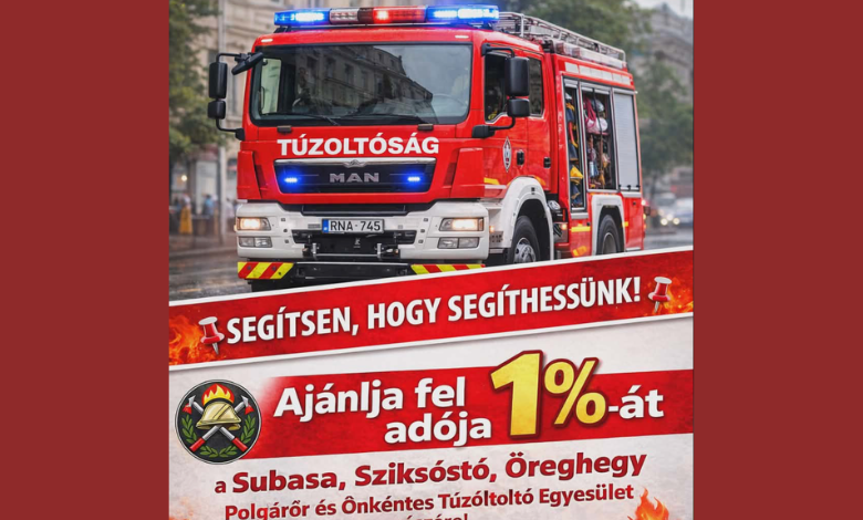 A plakáton is egyértelmű az üzenetük: „Segítsen, hogy segíthessünk!” és ehhez most tényleg egyetlen adatot kell jól beírnod. Az egyesület neve: Subasa, Sziksóstó, Öreghegy Polgárőr és Önkéntes Tűzoltó Egyesület, az adószámuk pedig: 19360876-1-06. Ha ezt választod, egy olyan helyi közösséget erősítesz, amelyik ott van, amikor számít a gyors reakció, és amikor a biztonság nem csak egy szó, hanem feladat.