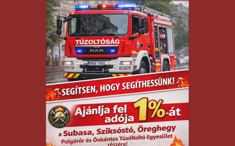 Most viszont ők kérnek egy egészen egyszerű, mégis sokat jelentő segítséget: az szja-bevallásodban az adód 1%-át felajánlhatod a Subasa, Sziksóstó, Öreghegy Polgárőr és Önkéntes Tűzoltó Egyesületnek. A felajánlás lényege, hogy így továbbra is gyorsan és hatékonyan tudjanak segíteni, amikor baj van, és közben a környék biztonságáért is dolgozhassanak, ugyanazzal a lendülettel, amit már annyiszor láttunk tőlük.