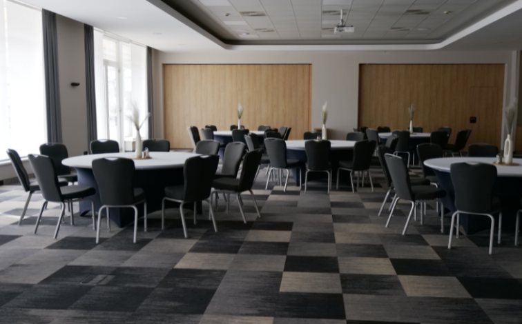 Az első megálló a rendezvényrész volt: három, külön is jól működő termük van, egy 70 és egy 80 négyzetméteres, valamint egy 200 négyzetméteres középső nagyterem. A terek igény szerint össze is nyithatóak, így a kapacitás rugalmasan alakítható, állófogadáson 300–350 főig, ültetett rendezvényen pedig 180 vendég is kényelmesen elfér. Esküvőkhöz, családi alkalmakhoz, céges eseményekhez és konferenciákhoz egyaránt használják, a Tiszára nyíló panoráma pedig sokaknál az a plusz, ami végül döntő érv.