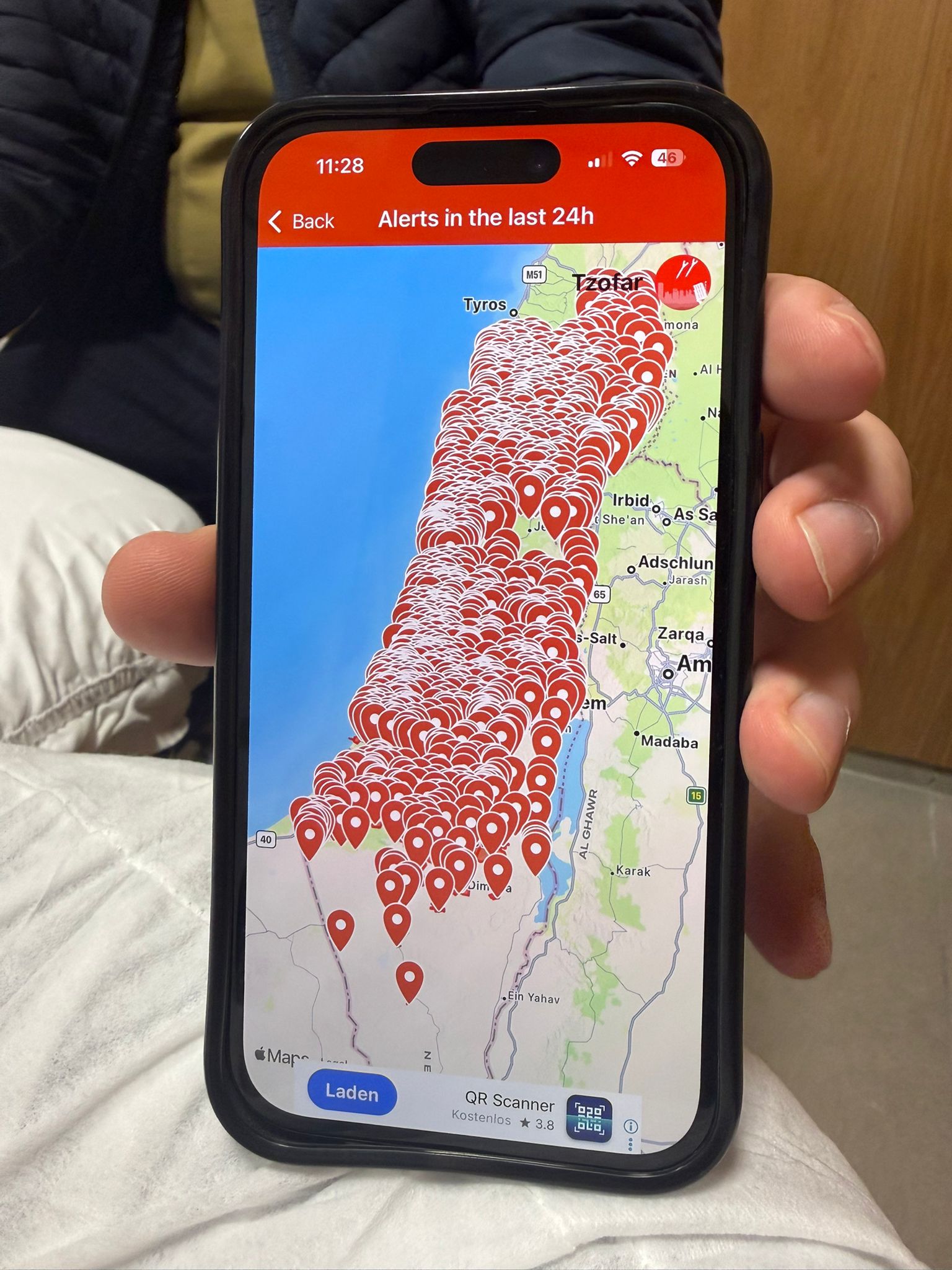 A város működése közben szinte leállt. Máté szerint törvény szabályozza, hogy ilyenkor mi lehet nyitva és mi nem, ezért „iskola nincs, bolt nincs”, legfeljebb gyorsan be lehet kapni valamit, majd menni kell a kijelölt menedékhelyekre. „Ebéd az nem lett, falafelt tudtunk enni, de sok minden zárva van” – foglalta össze. A beszélgetésünk közepén aztán meg is kellett szakítanunk az interjút: pont akkor hívták azzal kapcsolatban, hogy áll a már leszervezett útvonal, mikor és merre tudnak megindulni.