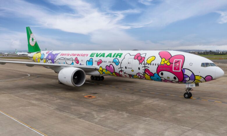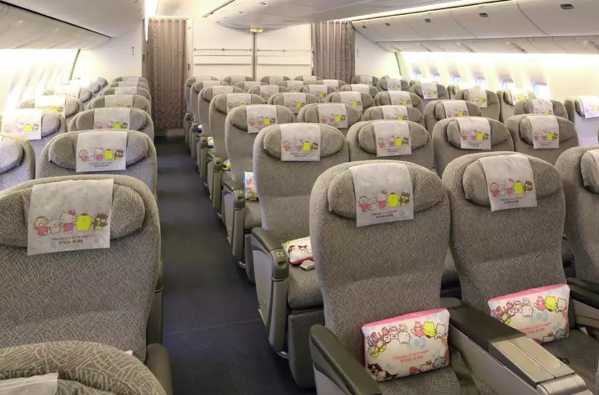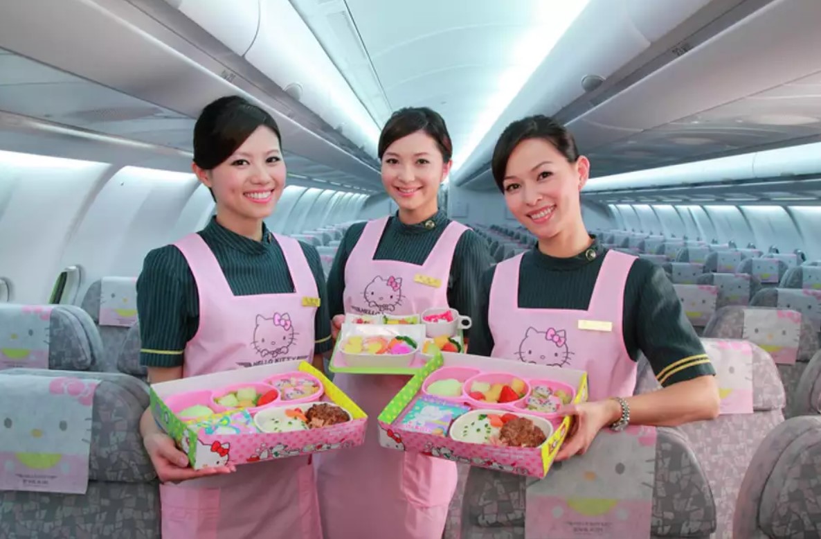 A fellelhető infók alapján, az EVA Air légitársaság jelenleg már hét, a japán rajzfilmfigurával kívül-belül feldíszített repülőgépet üzemeltet. Ezekkel az igazán barátságos gépmadarakkal Taipei és Tokió, Sapporo, Fukuoka, Szöul, Guam, Shanghai illetve Hong Kong között találkozhatunk. Az utastérbe lépve mindenhol a barátságos cicalánnyal és társaival futhatunk össze: az ülőhelyek és párnák borításán, az ételeken, a játék kártyákon, a WC papíron és a képeslapokon is Hello Kitty van.
