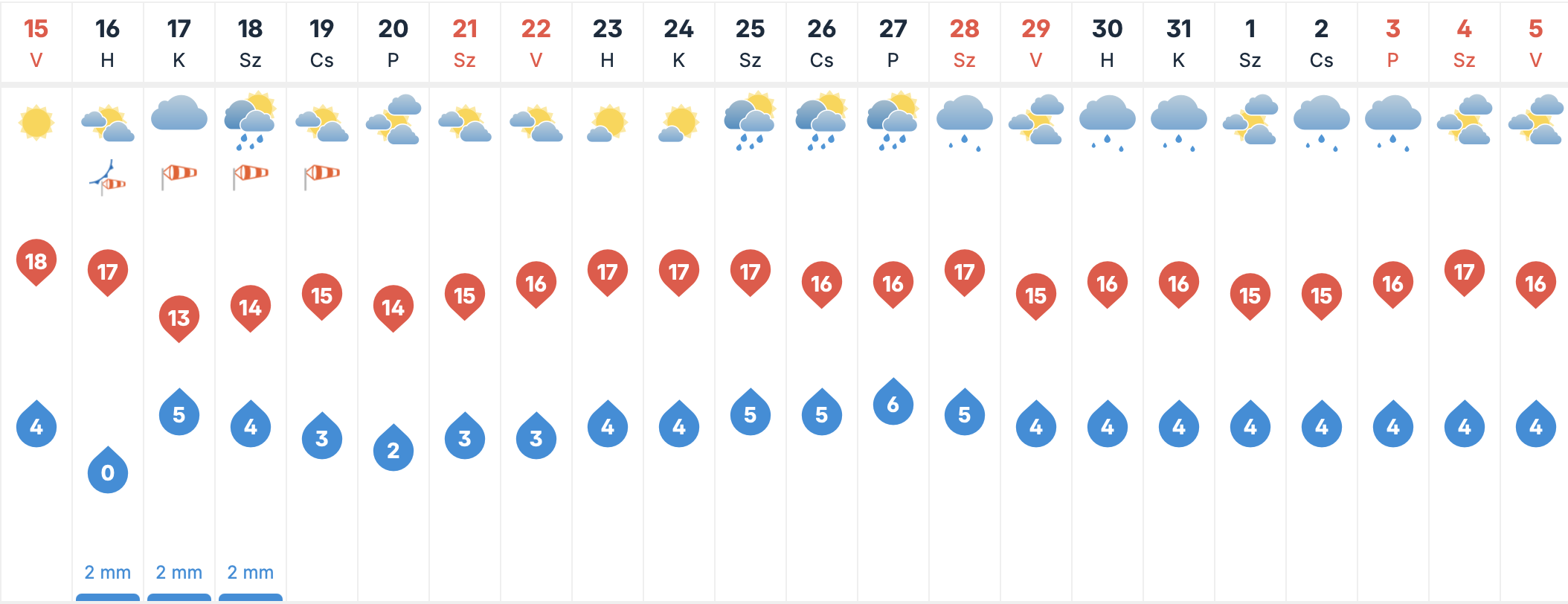 Összességében hétfőn is kellemes tavaszi napunk lesz Szegeden, 17 fokos csúcsértékekkel, azonban ezen a napon már felhők tarkíthatják az égboltot, és az esernyőt is érdemes lesz magunkkal vinnünk, ugyanis elszórtan kialakulhatnak záporok.