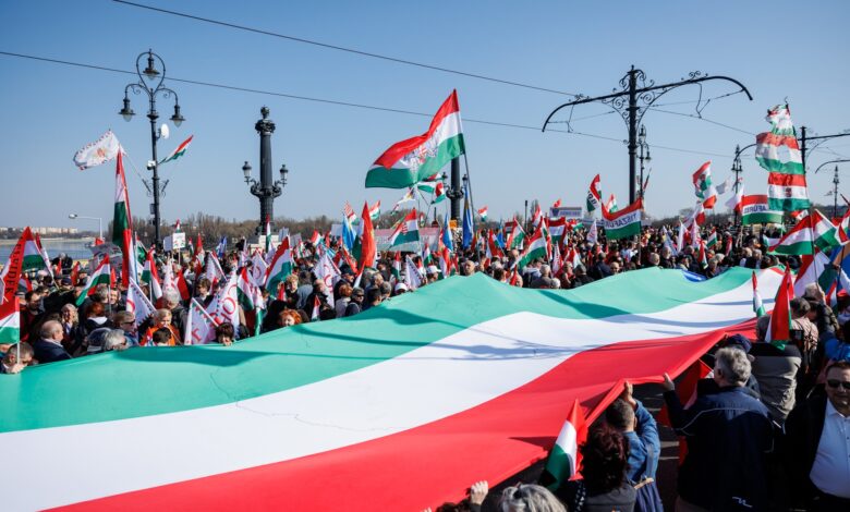 A menet halad a Kossuth tér felé, a tervek szerint 13:00 órakor veszi kezdetét a miniszterelnök beszéde.