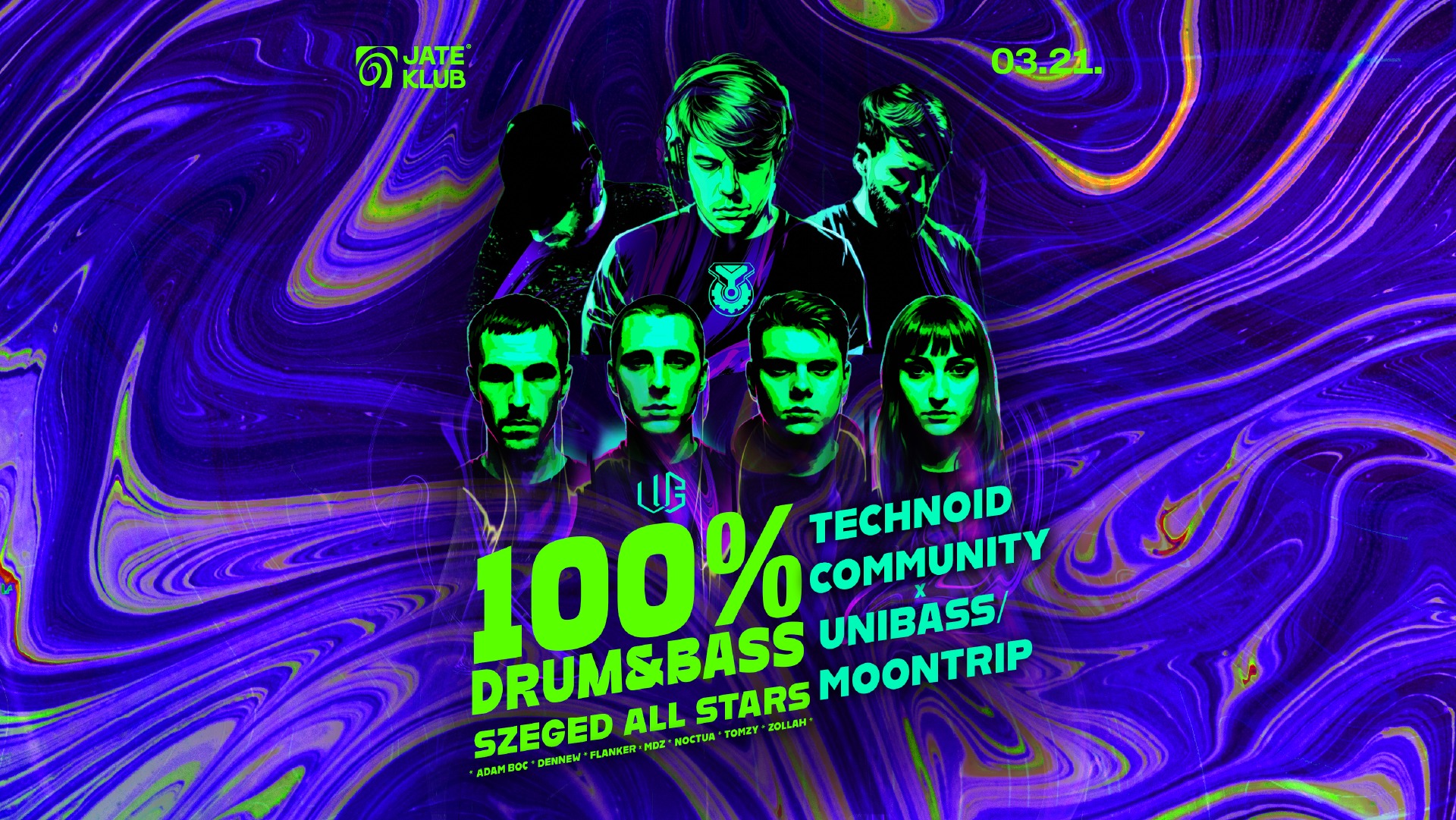 Március 21-én jön Szeged első igazi DnB All Stars bulija a JATE Klubban, ahol a Technoid Community és az Unibass & Moontrip csapat legjobbjai pörgetik a lemezeket. Klasszik drum and bass vibe reggelig – ez kemény menet lesz.