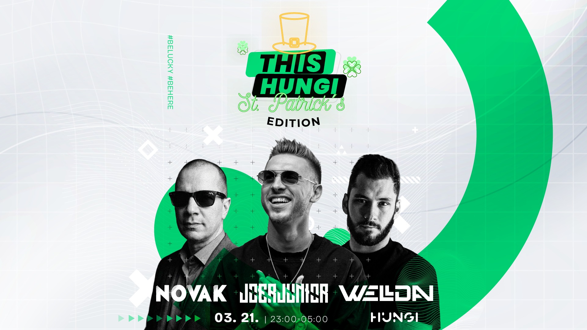 A Hungi egy estére ír hangulatba kapcsol: a St. Patrick’s Edition során a DJ-k nem csak zenélnek, hanem együtt buliznak veled. Novak, JoerJunior és Welldan gondoskodik róla, hogy emlékezetes legyen a szombat éjszaka.