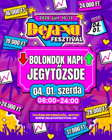 Most pedig itt az újabb fordulat: április 1-jén, szerdán ismét jön a bolondok napi jegytőzsde, vagyis 8:00 és 24:00 között újra elszabadulnak az árak! A bérletárak nap közben fel és le is mozoghatnak, a feltüntetett összegek között szerepel 16 000, 17 000, 19 000, 24 000 és 28 000 forint is. Pont ez benne a lényeg: nem egyszerű akcióról van szó, hanem egy egész napos bérletvadászatról, ahol az nyer igazán, aki jókor néz rá, és nem hezitál túl sokáig. A Deja Vu ráadásul már most olyan nevekkel húzza fel a pulzust, mint Flo Rida, Timbaland, Inna, Bonnie Tyler vagy Samantha Fox, szóval most tényleg nagyon könnyű meglátni, mekkora fogás lehet egy jól elkapott ár!