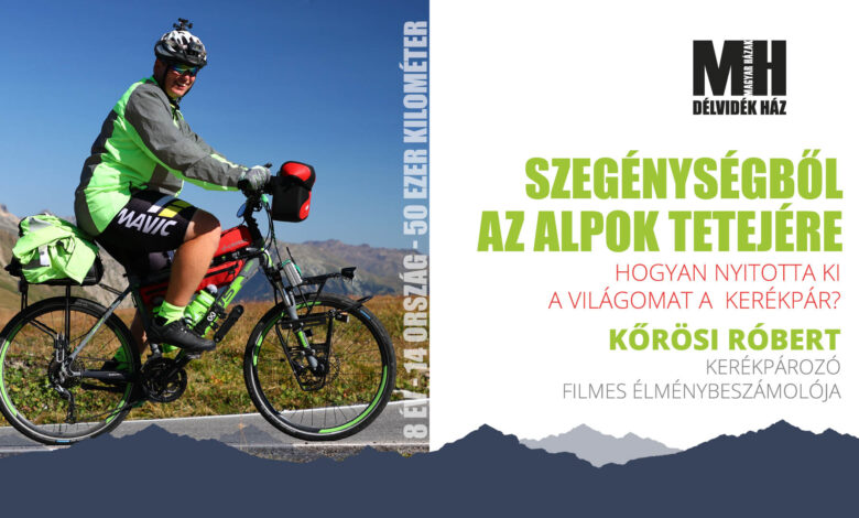 És most jön egy olyan este, ami első ránézésre kerékpáros élménybeszámolónak tűnhet, valójában viszont ennél sokkal több. Kőrösi Róbert története húszévesen, Topolyán indul, egy olyan élethelyzetből, ahol a mindennapok nem az utazásról, hanem sokkal inkább a túlélésről szóltak. A kerékpár itt nem egyszerű sporteszközként jelenik meg, hanem kiútként, kapaszkodóként, egy csendes, de sorsfordító lehetőségként. Innen vezet az út az első bizonytalanabb tekerésektől a többnapos túrákig.