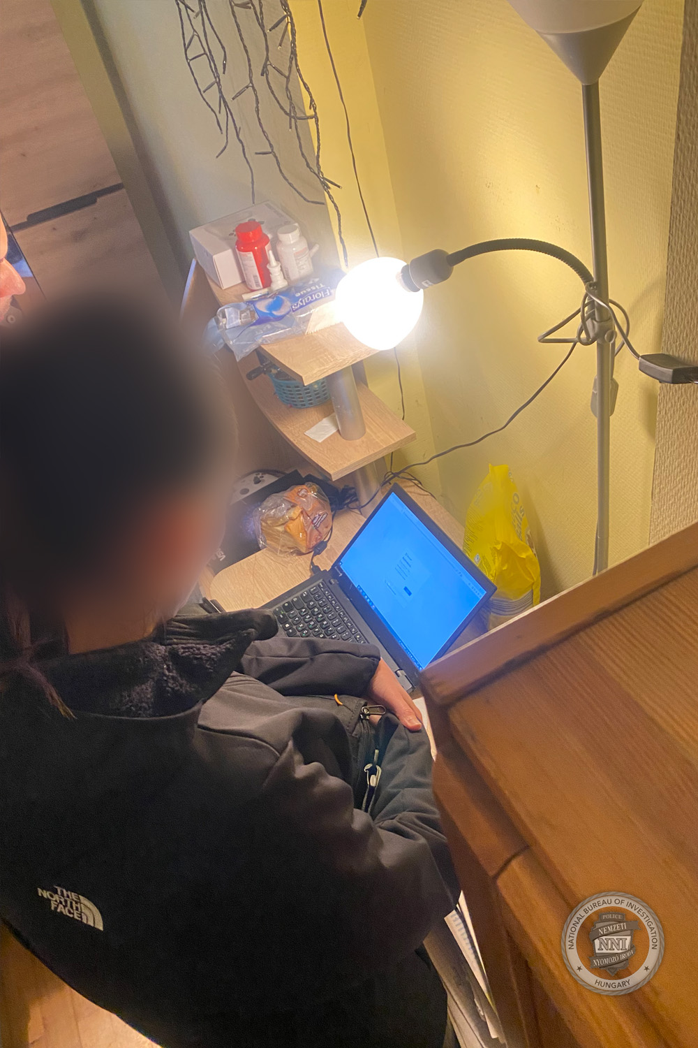 Célja megvalósításához már egy kést is beszerzett, és beszélgetőpartnerének hat konkrét célpontot meg is nevezett. A cselekmény valós előkészületére tekintettel a KR NNI nyomozói a budapesti fiút március 30-án reggel iskolájában fogták el. Otthonában kutatást hajtottak végre. Lefoglalták mobiltelefonját, laptopját és internet stickjét. A 15 éves fiatalt a szlovén elkövető támogatása okán előre kitervelten, több ember sérelmére, bűnsegédként elkövetett emberölés bűntett kísérletével gyanúsították meg, míg az általa tervezett támadásokkal kapcsolatban hatrendbeli emberölés előkészületével. A fiú vallomást nem tett, a bűncselekmény elkövetését tagadta. A KR NNI kezdeményezte letartóztatását – írja a rendőrség.