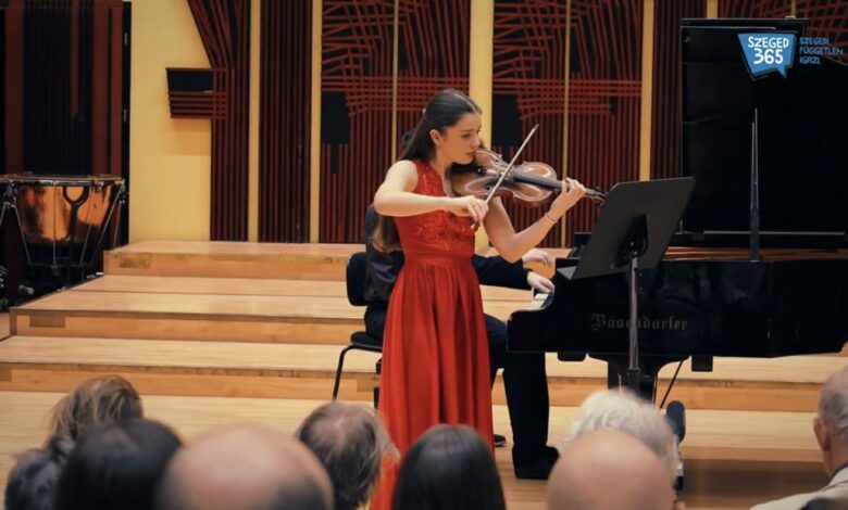Haluska Lara, az ifjú hegedűművész Szegeden kezdte meg az európai turnéját az Opus3 trió kamarazenekarral