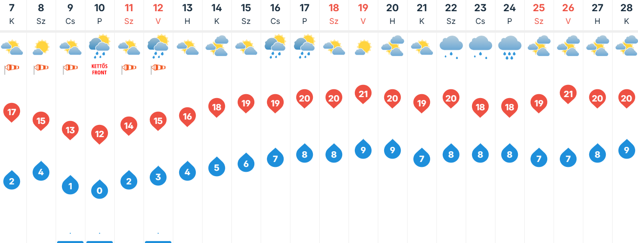 Szerdán már időnként felhők zavarhatják meg a napsütést, de említésre méltó csapadék ezekből a felhőkből sem várható. Az ország nagy részén élénk, erős lesz az északias szél. Reggelre -3 és +6 fok közé csökken a hőmérséklet, majd napközben 8-15 fokot mérhetünk.