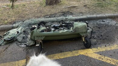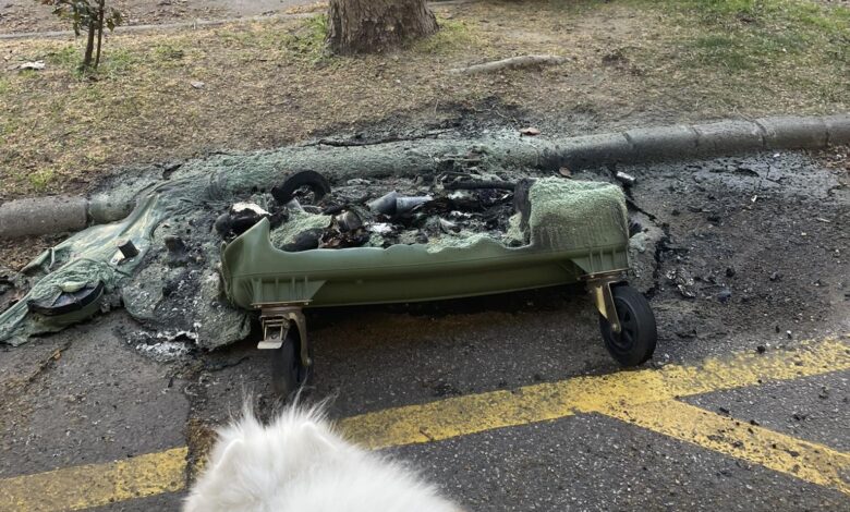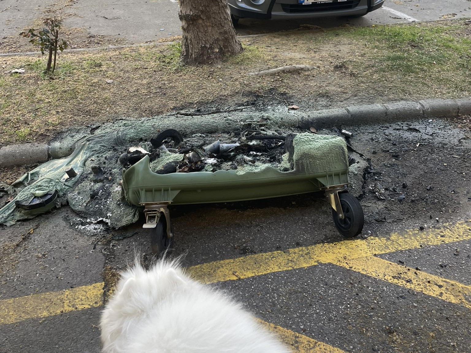 „Nem bírta a meleget” – egy szegedi utcában árválkodik a nemrégiben leégett kuka, pontosabban ami maradt belőle