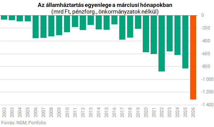A Portfolió részletes elemzése rámutat: ha megnézzük az előző éveket, akkor azt látjuk, hogy a márciusi hónapok korábban sokkal kisebb deficitet eredményeztek, mint most. A lap hozzáteszi: még a választási évek sem hoztak olyan kiugró hiányszámokat, mint az idei deficit.