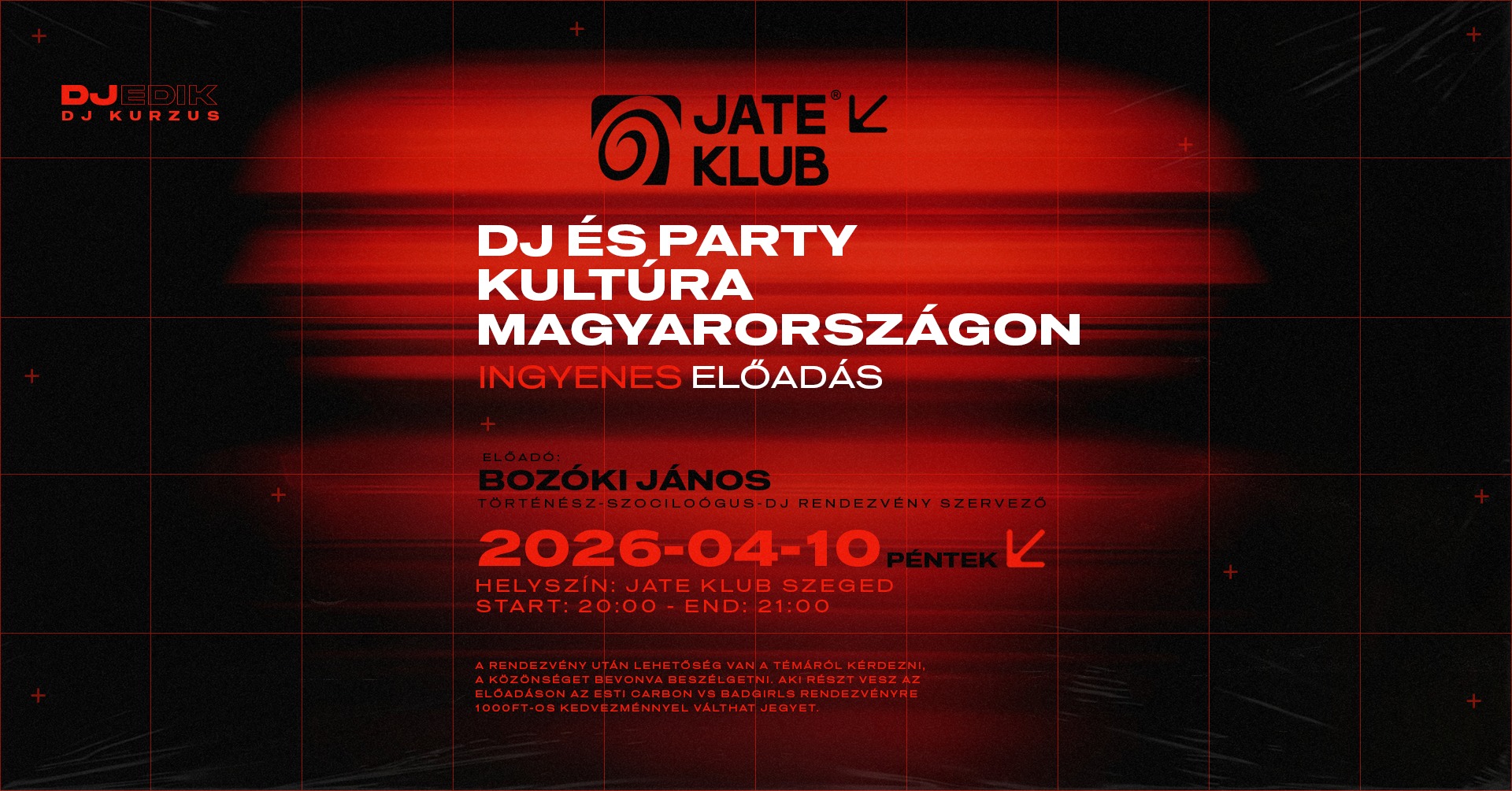 Egy órás, izgalmas betekintés a hazai DJ- és klubélet világába a rendszerváltás előtti időktől napjainkig. Történet, háttér és személyes sztorik egy több mint 25 éve a szcénában mozgó előadótól, Bozóki Jánostól.