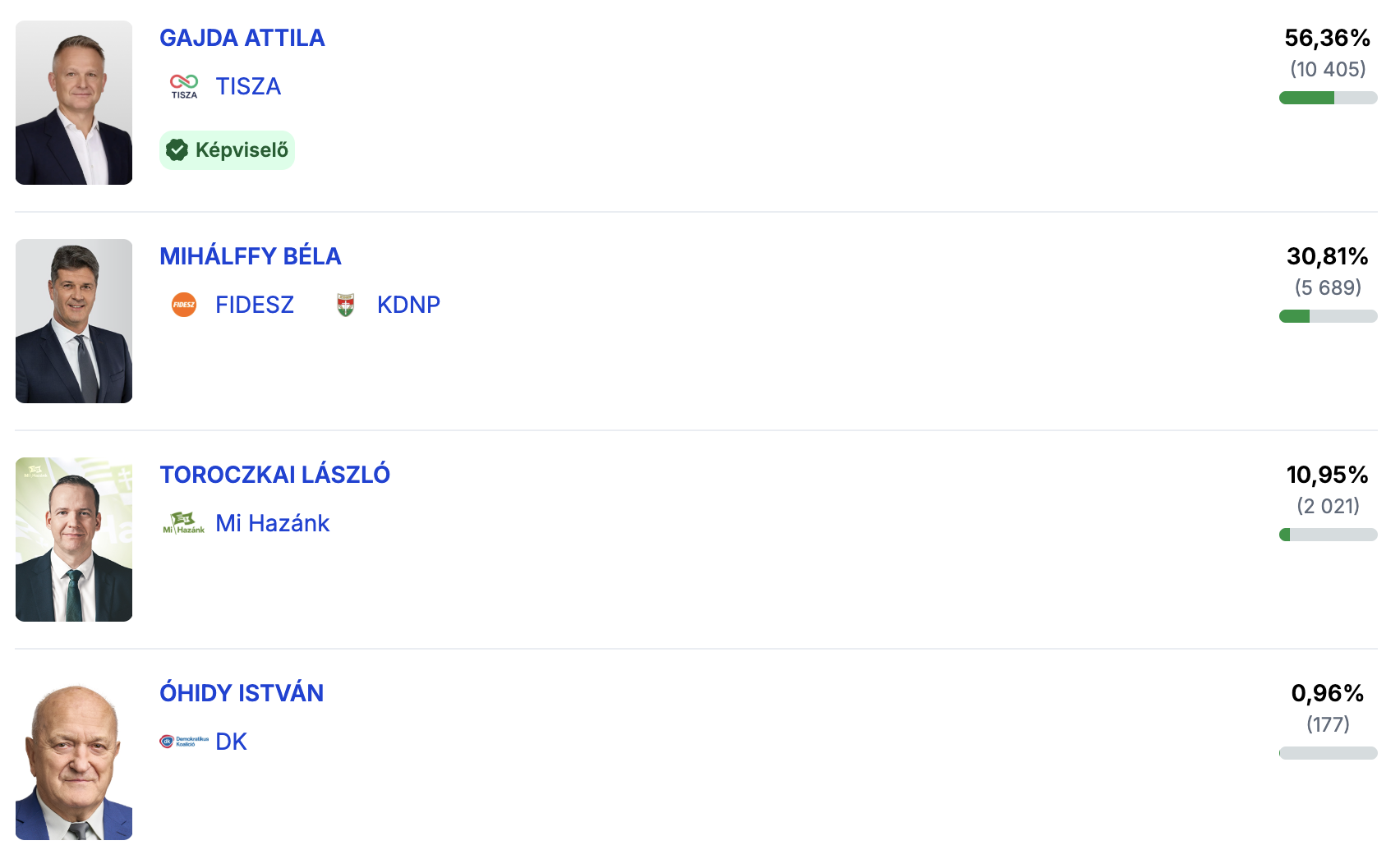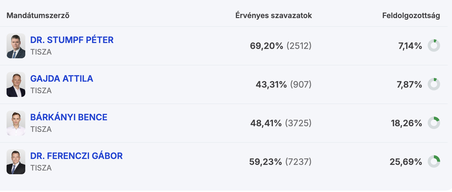 Csongrád-Csanádban, mind a négy választókerületben a Tisza Párt jelöltjei vezetnek:
