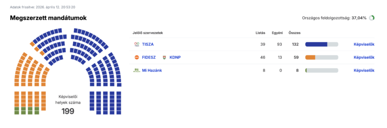 (20:56) KÉTHARMAD KÖZELÉBEN A TISZA PÁRT, MÁR 37% A FELDOLGOZOTTSÁG