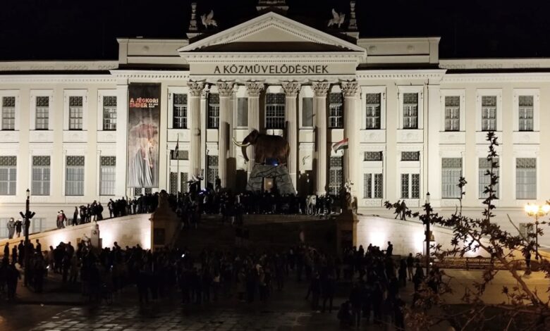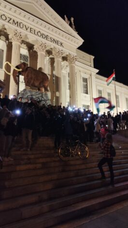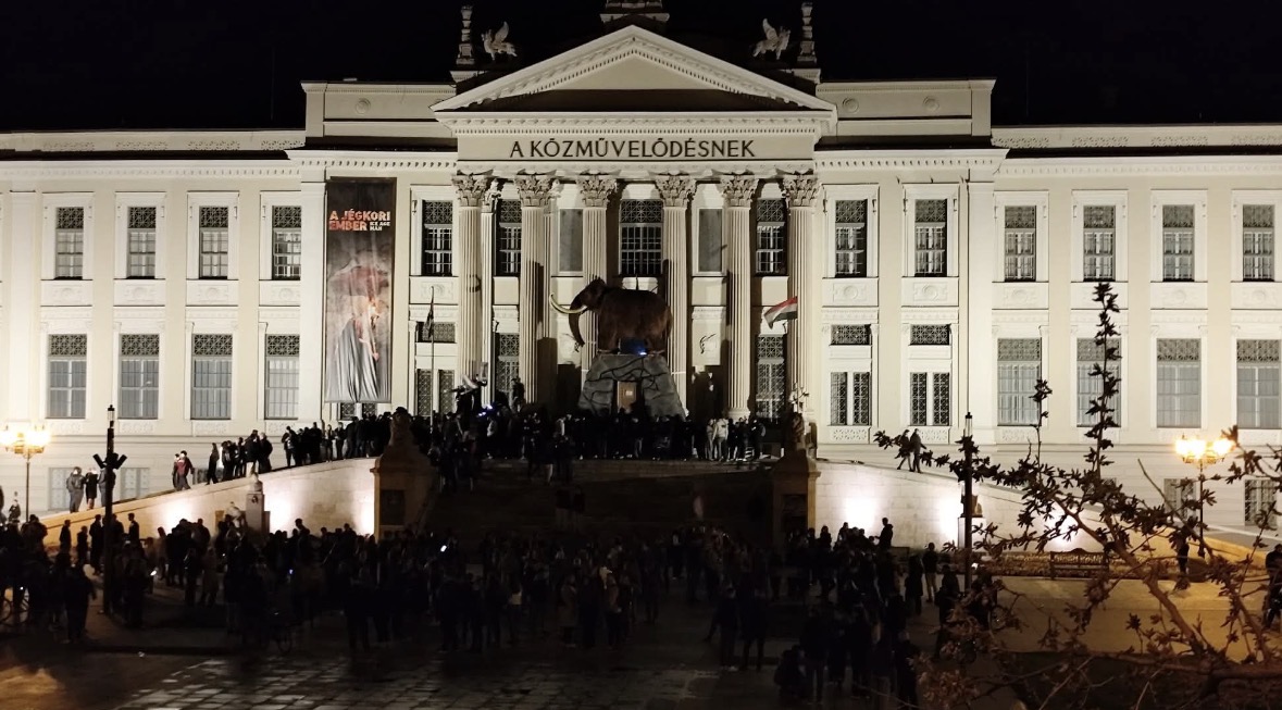 Később helyre állt a rend, a fiatalok tovább vonultak és elfoglalták a Móra Ferenc Múzeum előtti területet és a lépcsőket, na meg a Szobokét is, majd énekelni kezdtek. Később voltak nem teljesen nyomdafestéket tűrő szlogenek is, de szerencsére a dallamok végül a Tavaszi szélre változtak. Kollégánk a helyszínről jelentkezett a Szeged365 Family-nek bemutatva a TISZA ünneplését: