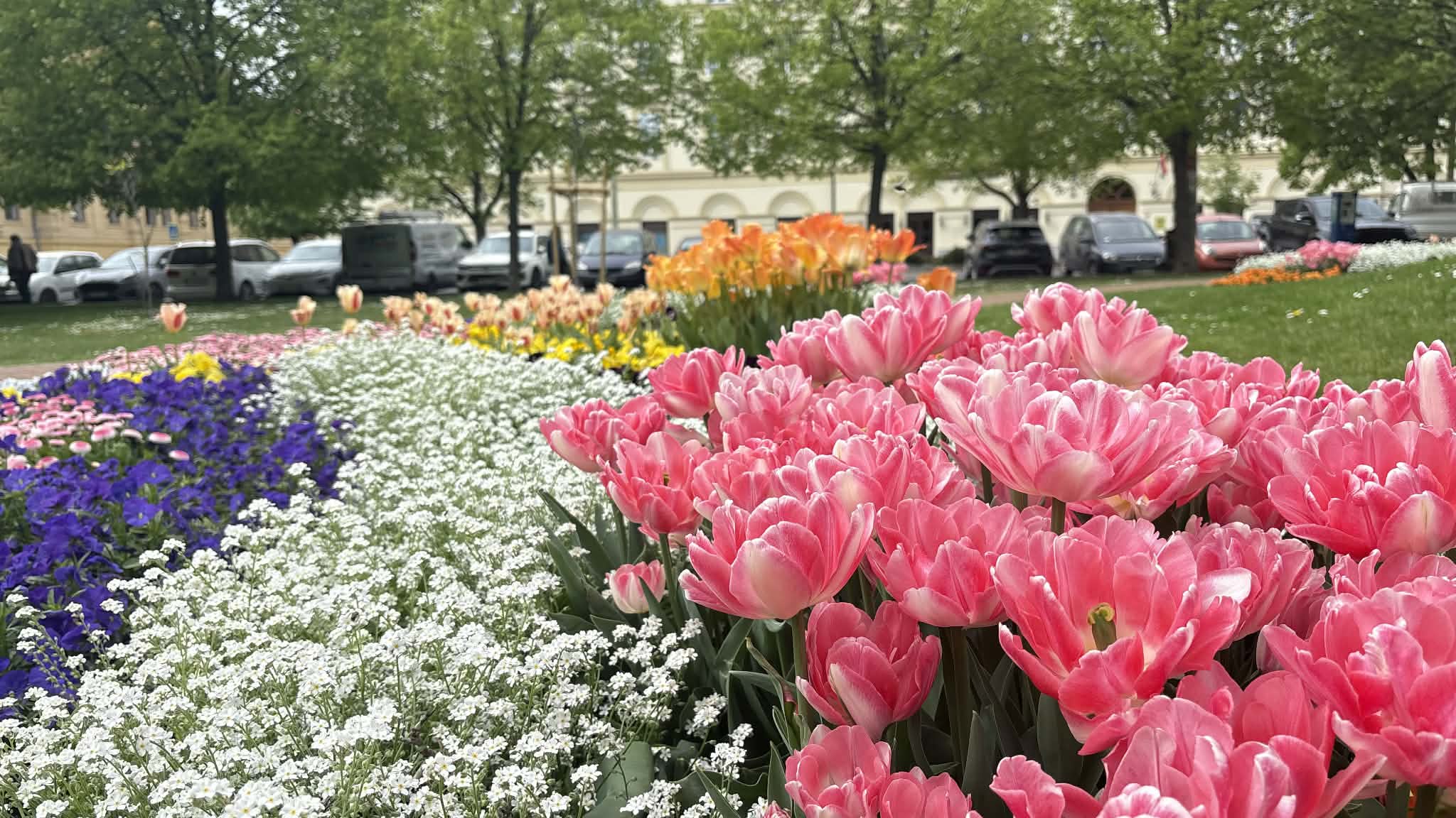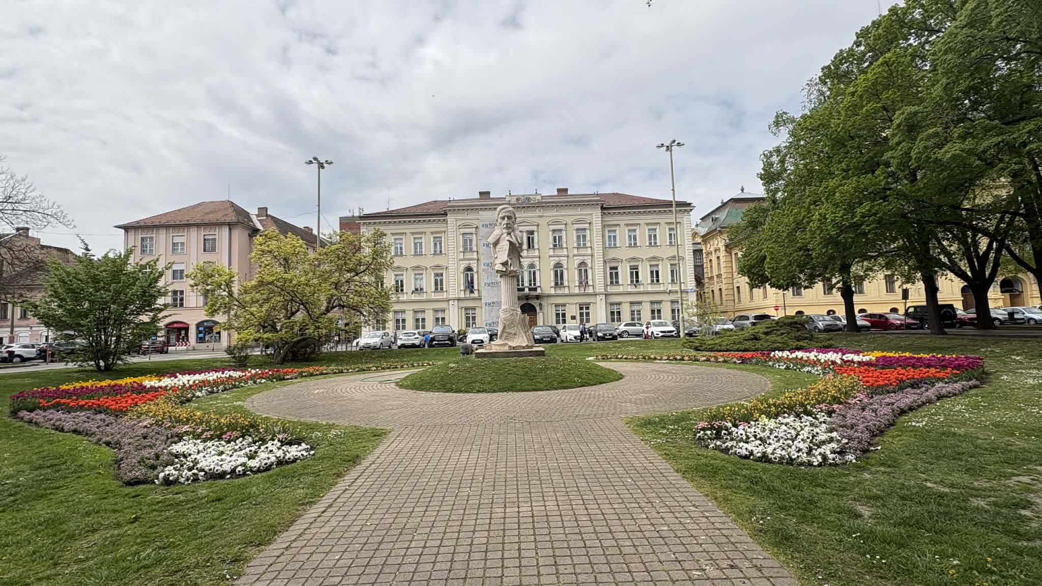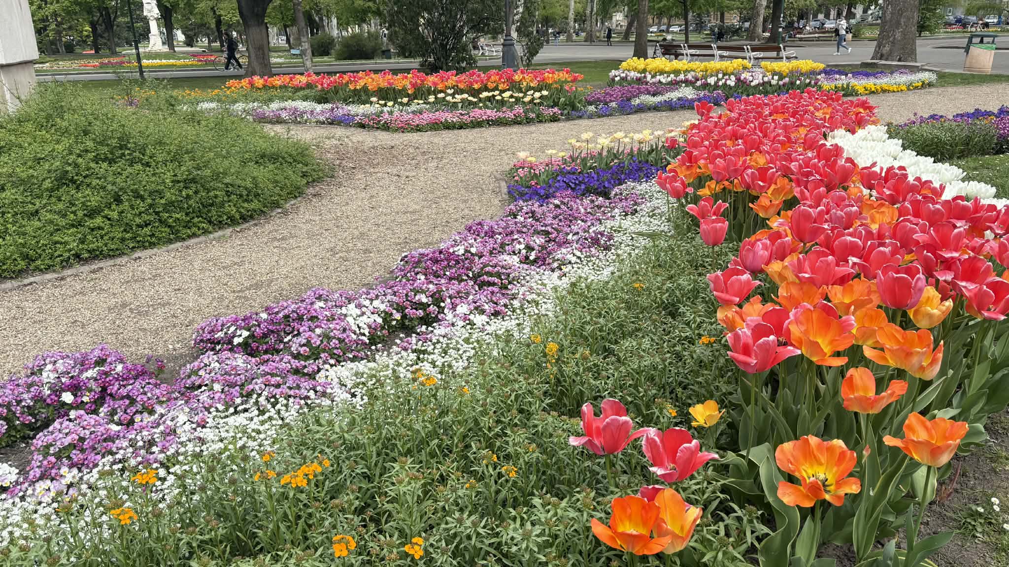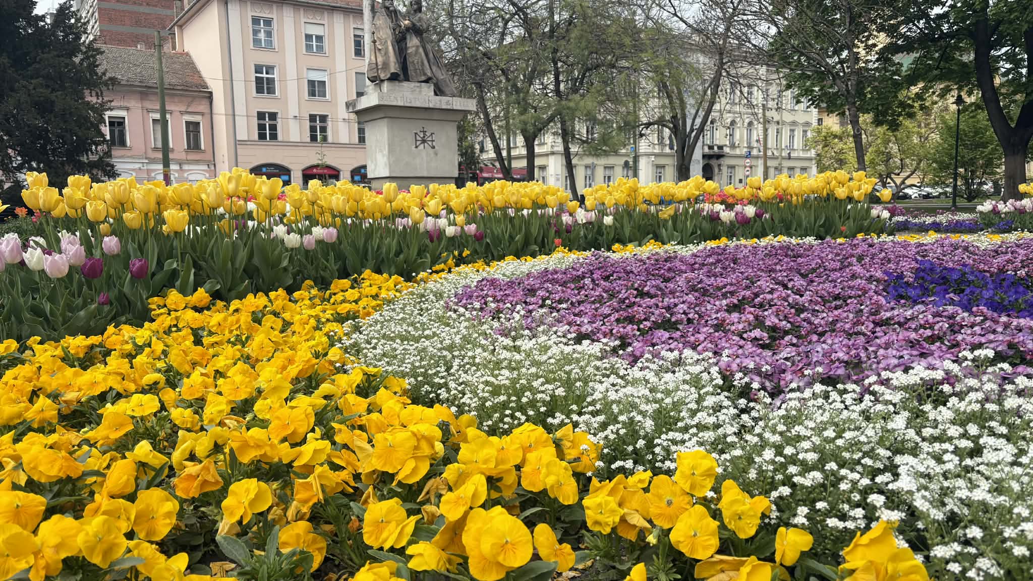 A Széchenyi tér tavasszal mindig különleges: színes tulipánok borítják be az egész teret, mintha a város szíve virágba borult volna. Az arra sétálók megállnak, mosolyognak, fotóznak, vagy csak csendben gyönyörködnek bennük. Olyan ez, mint egy óriási csokor virág, ami nem vázában van, hanem egy egész városnak szól.